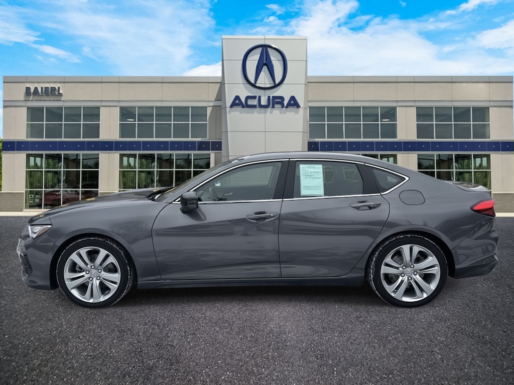 Baierl Acura is proud to offer this terrific 2022 Acura TLX in Modern Steel Metallic. This vehicle has been through our award winning factory trained service department*** and comes with the following features; Theres no back-and-forth, we offer one fair price, CLEAN CARFAX, HEATED FRONT SPORT SEATS, PREMIUM PERFORATED MILANO LEATHER TRIMMED INTERIOR, POWER MOON ROOF, ACURA NAVIGATION SYSTEM WUTH 3D VIEW, ELS STUDIO PREMIUM AUDIO SYSTEM, APPLE CARPLAY / ANDROID AUTO, MULTI-ZONE CLIMATE CONTROL, ADAPTIVE CRUISE CONTROL WITH LOW-SPEED FOLLOW AND TRAFFIC STOP / GO, BLIND SPOT INFORMATION SYSTEM, COLLISION MITIGATION BRAKING SYSTEM WITH REAR CROSS TRAFFIC MONITOR, LANE KEEPING ASSIST SYSTEM, TRAFFIC JAM ASSIST, 19 SILVER SPARKLE METALLIC INTERWOVEN WHEELS, 13 Speakers, 4-Wheel Disc Brakes, ABS brakes, Acura Navigation System w/3D View, AM/FM radio: SiriusXM, Anti-whiplash front head restraints, Apple CarPlay/Android Auto, Auto High-beam Headlights, Auto-dimming Rear-View mirror, Brake assist, Bumpers: body-color, Compass, Delay-off headlights, Driver door bin, Driver vanity mirror, Dual front impact airbags, Dual front side impact airbags, Electronic Stability Control, Emergency communication system: AcuraLink, Exterior Parking Camera Rear, Four wheel independent suspension, Front anti-roll bar, Front Center Armrest w/Storage, Front dual zone A/C, Front reading lights, Garage door transmitter: HomeLink, Heated door mirrors, Heated Front Sport Seats, HVAC memory, Illuminated entry, Knee airbag, Lane departure: Lane Keeping Assist System (LKAS) active, Leather steering wheel, Low tire pressure warning, Memory seat, Navigation system: Acura Navigation System with 3D View, Occupant sensing airbag, Outside temperature display, Overhead airbag, Overhead console, Panic alarm, Passenger door bin, Passenger vanity mirror, Power door mirrors, Power driver seat, Power moonroof, Power passenger seat, Power steering, Power windows, Prem Perforated Milano Leather-Trimmed Interior, Premium audio system: Acura/ELS Surround, Radio data system, Radio: ELS Studio Premium Audio System, Rear anti-roll bar, Rear reading lights, Rear seat center armrest, Rear window defroster, Remote keyless entry, Security system, Speed control, Speed-sensing steering, Speed-Sensitive Wipers, Split folding rear seat, Steering wheel mounted audio controls, Tachometer, Telescoping steering wheel, Traction control, Trip computer, Turn signal indicator mirrors, Wheels: 19 x 8.5 Sparkle Silver Met Interwoven.