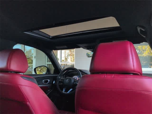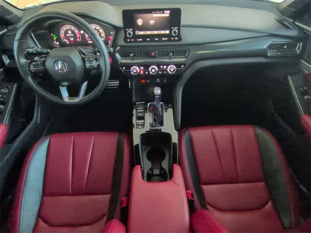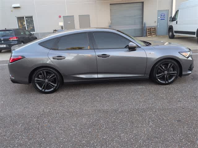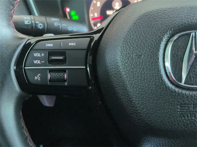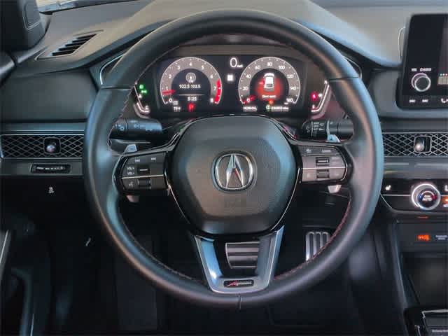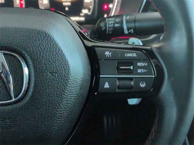 This 2023 Acura Integra A-Spec Package in Gray, features 18 Alloy Wheels, 4-Wheel Disc Brakes, 8 Speakers, ABS brakes, Air Conditioning, Alloy wheels, AM/FM radio, Apple CarPlay/Android Auto, Auto High-beam Headlights, Auto-dimming Rear-View mirror, Automatic temperature control, Brake assist, Bumpers: body-color, Compass, Delay-off headlights, Driver door bin, Driver vanity mirror, Dual front impact airbags, Dual front side impact airbags, Electronic Stability Control, Four wheel independent suspension, Front anti-roll bar, Front Bucket Seats, Front Center Armrest, Front dual zone A/C, Front fog lights, Front reading lights, Fully automatic headlights, Heated door mirrors, Heated Front Bucket Seats, Heated front seats, Illuminated entry, Knee airbag, Lane departure: Lane Keeping Assist System (LKAS) active, Leather Shift Knob, Leatherette-Trimmed Seating Surfaces, Low tire pressure warning, Occupant sensing airbag, Outside temperature display, Overhead airbag, Overhead console, Panic alarm, Passenger door bin, Passenger vanity mirror, Power door mirrors, Power driver seat, Power moonroof, Power steering, Power windows, Radio data system, Radio: Acura Premium Audio System, Rear anti-roll bar, Rear seat center armrest, Rear side impact airbag, Rear window defroster, Remote keyless entry, Security system, Speed control, Speed-sensing steering, Speed-Sensitive Wipers, Split folding rear seat, Spoiler, Steering wheel mounted audio controls, Tachometer, Telescoping steering wheel, Tilt steering wheel, Traction control, Trip computer, and Variably intermittent wipers: