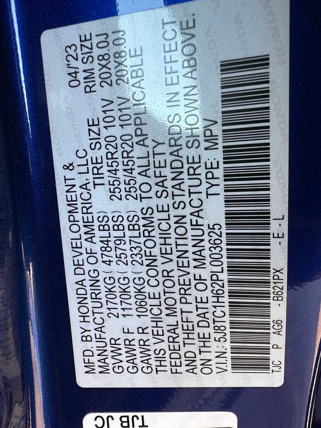 - 5J8TC1H62PL003625