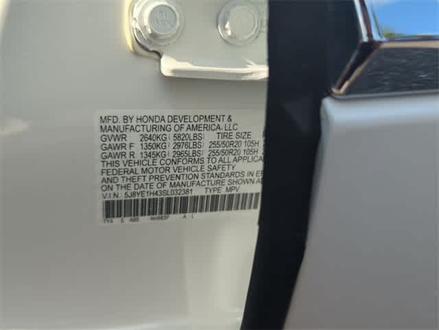 - Front tires: 255/50HR20.0
