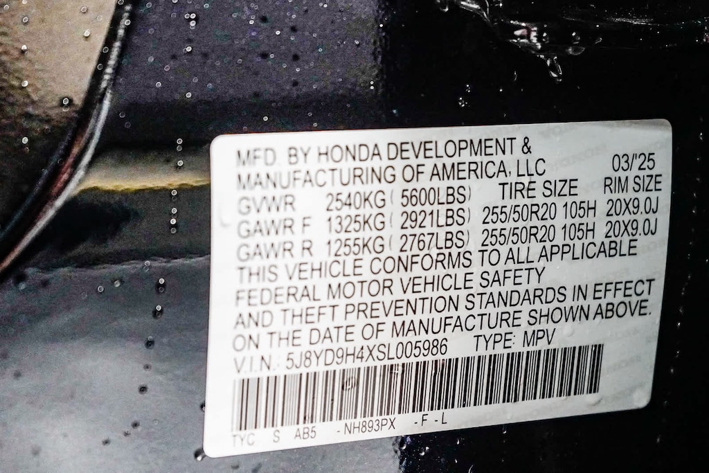 - Front tires: 255/50HR20.0