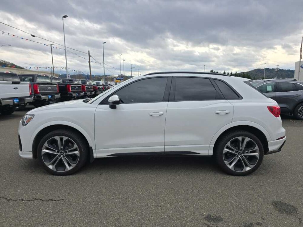 PREMIUM PLUS PACKAGE Adaptive Cruise Assist w/Lane Guidance, Stainless Steel Trunk Sill, Customizable LED Interior Lighting Package Plus, Heated Power-Folding Exterior Mirrors, driver auto-dimming and memory, Alarm w/Motion Sensor, SiriusXM All Access Service, Driver Memory, HomeLink Garage Door Opener, Frameless Auto-Dimming Interior Mirror w/Compass, Audi Advanced Key, 4 doors and tailgate, sensor opening, Full LED Headlights w/Unique DRL Signature, Topview Camera System, Audi Phone Box w/Wireless Charging, signal booster, TECHNOLOGY PACKAGE Alexa integration and wireless Apple CarPlay®, 12.3 Audi Virtual Cockpit Screen, MMI Touch Display, 10.1 screen, Traffic Sign Recognition, Audi Connect PRIME & PLUS, Sonos Premium Sound System w/3D Sound, MMI Navigation Plus, BLACK OPTIC SPORT PACKAGE Black Optic Exterior Kit & Roof Rails, Tires: 19 All-Season, S Line Sport Seats, Wheels: 19 5-Double-Arm Design Bi-Color Finish, AUDI BASE CARRIER BARS W/STORAGE BAG. 2022 Audi Q3 with Ibis White exterior and Black interior features a 4 Cylinder Engine with 228 HP at 6000 RPM*. Non-Smoker vehicle