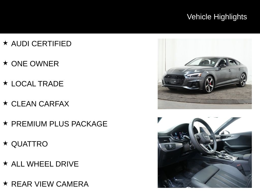 This Audi A5 Sportback is a true testament to the brand's commitment to craftsmanship, technology, and performance. With its impressive list of features, exceptional condition, and Audi Certified pre-owned status, it represents an exceptional value proposition for the discerning buyer. I encourage you to schedule a test drive and experience the exceptional driving dynamics and premium amenities of this remarkable vehicle.