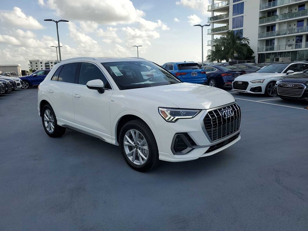 CARFAX One-Owner. Clean CARFAX. Certified. Q3 Ibis White Premium quattro 8-Speed Automatic with Tiptronic 2.0L 4-Cylinder TFSI Q3 Premium S Line quattro, 2.0L 4-Cylinder TFSI, Black w/Leather Seating Surfaces, Alarm w/Motion Sensor, Audi Advanced Key, Auto-Dimming Power-Folding Exterior Mirrors, Black Optic Sport Package, Black Roof Rails, Convenience Package, Driver Seat Memory, Frameless Auto-Dimming Interior Mirror w/Compass, High-Gloss Black Exterior Elements, LED Interior Lighting Package, Power Liftgate, Power moonroof: Panoramic, SiriusXM w/360L, Sport Front Seats, Wheels: 19 5-Double-Arm Design.