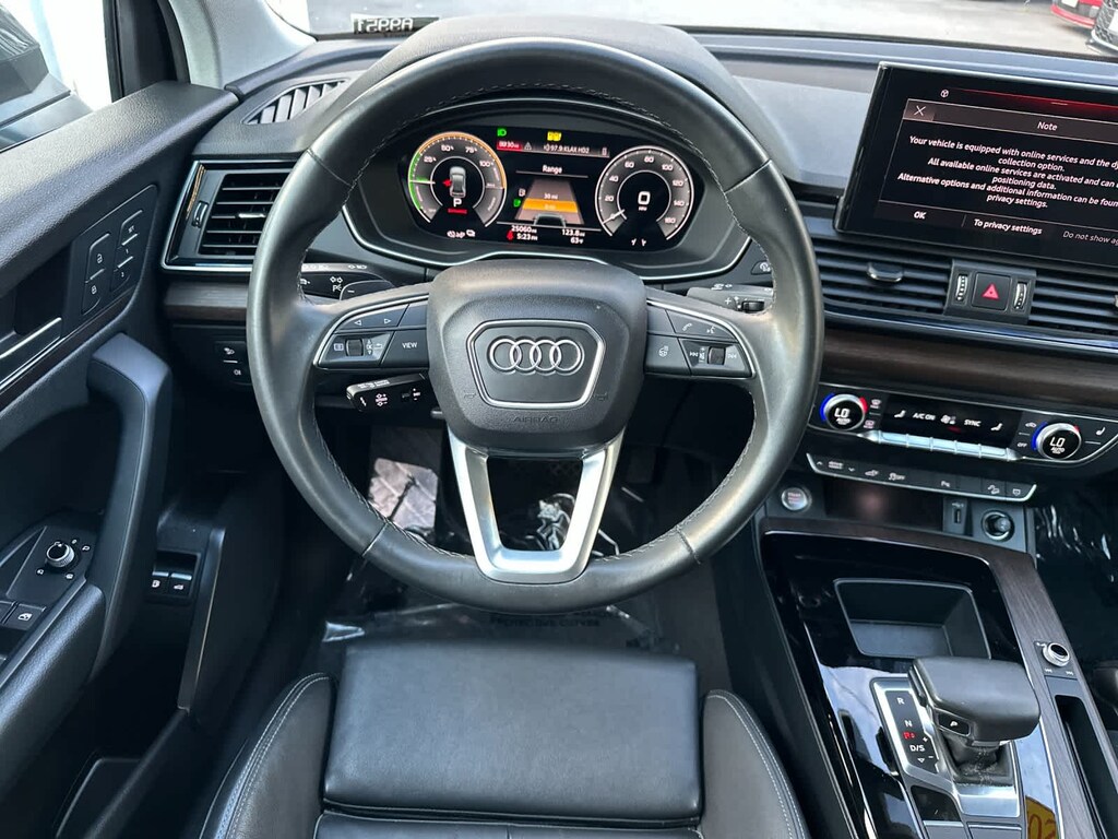 Certified. 2023 Audi Q5 e 55 Premium S Line Chronos Gray Metallic S Line Still Under Factory Warranty, LOW LOW MILES!, Service Contract Available, All Services Updated, Q5 e 55 Premium S Line, 4D Sport Utility, 2.0L Turbocharged, 7-Speed Automatic S tronic, quattro, Chronos Gray Metallic, Black w/Leather Seating Surfaces, 10 Speakers, AM/FM radio, Audi Advanced Key, Auto-Dimming Heated & Pwr Folding Exterior Mirrors, Convenience Package, Driver door bin, Driver Seat Memory, Front reading lights, Garage door transmitter: HomeLink, Genuine wood dashboard insert, Gray-Brown Birch Natural Wood Inlays, Heated Steering Wheel, Panoramic Sunroof, SiriusXM w/360L. Clean CARFAX. CARFAX One-Owner.