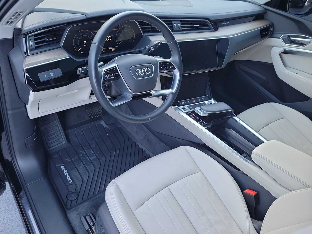 Recent Arrival! CARFAX One-Owner. Clean CARFAX. Certified. Q8 e-tron Mythos Black Metallic Premium quattro Single-Speed Automatic Electric ZEV Q8 e-tron Premium quattro, Electric ZEV, Single-Speed Automatic, quattro, Mythos Black Metallic, Pearl Beige w/Leather Seating Surfaces or Valcona/Milano Leather Seat Trim, Adaptive suspension, Auto High-beam Headlights, Auto-leveling suspension, Black Optic Package, Black Roof Rails, Brake assist, Delay-off headlights, Dual front impact airbags, Dual front side impact airbags, Emergency communication system: Audi connect CARE (limited time subscription), Exterior Parking Camera Rear, Four wheel independent suspension, Fully automatic headlights, High-Gloss Black Front Grille & Mask, High-Gloss Black Rear Diffuser Inlay, High-Gloss Black Window Surrounds, Memory seat, Navigation system: MMI Navigation plus, Occupant sensing airbag, Overhead airbag, Power Liftgate, Power moonroof: Panoramic, Rear anti-roll bar, Rear fog lights, Speed-sensing steering, Wheels: 20 5-Arm Aero Ring Design.