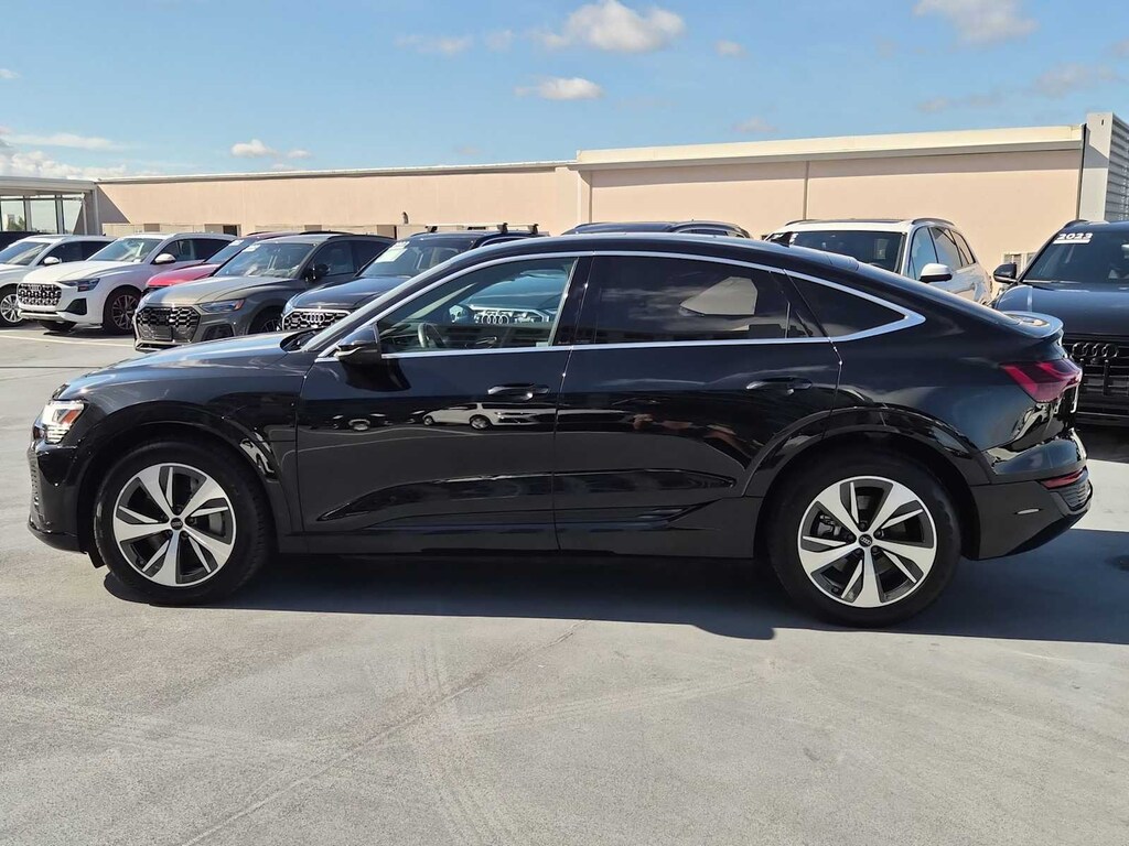 Clean CARFAX. Priced below KBB Fair Purchase Price! Certified. Q8 Sportback e-tron Mythos Black Metallic Premium Plus quattro Single-Speed Automatic Electric ZEV Q8 Sportback e-tron Premium Plus S line quattro, Mythos Black Metallic, Okapi Brown w/Leather Seating Surfaces or Valcona/Milano Leather Seat Trim, Animation for Headlights & Taillights, Bang & Olufsen Sound System w/3D Sound, Dual Pane Acoustic Glass for Side Door Windows, Front Passenger Power Lumbar, Heated front seats, Heated Rear Seats, LED Interior Lighting Package, Matrix-Design LED Headlights, Power Liftgate, Power moonroof: Panoramic, Premium Plus Package, Top View Camera System, Traffic Sign Recognition, Ventilated Front Seats, Wheels: 20 5-Arm Aero Ring Design, Wireless Phone Charging Pad.