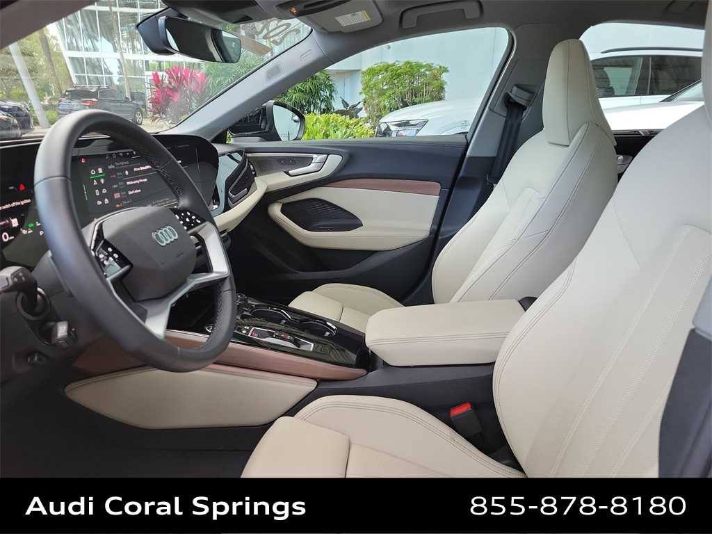 Certified. 2025 Audi A5 2.0T Premium Plus quattro A5 2.0T Premium Plus quattro, quattro, Mythos Black Metallic, Pearl Beige w/Leather Seating Surfaces, 19 Wheel Package, ABS brakes, Adaptive Cruise Assist, Alloy wheels, Animation For Taillights, Bang & Olufsen Sound System with 3D Sound, Beige Warm Weather Package, Brown Applewood Natural Wood Inlays, Compass, Dynamic Interaction Light, Electronic Stability Control, Front Bucket Seats, Front Center Armrest, Front dual zone A/C, Head-Up Display, Heated and Ventilated Front Sport Seats, Heated door mirrors, Heated Front Bucket Seats, Heated front seats, Heated Steering Wheel with Hands-on Detection, Illuminated entry, LED Headlights Plus with Digital DRL, LED Interior Lighting Pro Package, Low tire pressure warning, Manual Rear Side Window Sunshades, Navigation System, Panoramic Glass with Variable Light Control, Park Assist Plus, Power Liftgate, Power passenger seat, Premium Plus, Remote keyless entry, Split folding rear seat, Top View Camera System, Traction control, USB Power Delivery (2x60W Front and 2x100W Rear), Wheels: 19 5-Arm-Aero Design Bi-Color Finish.