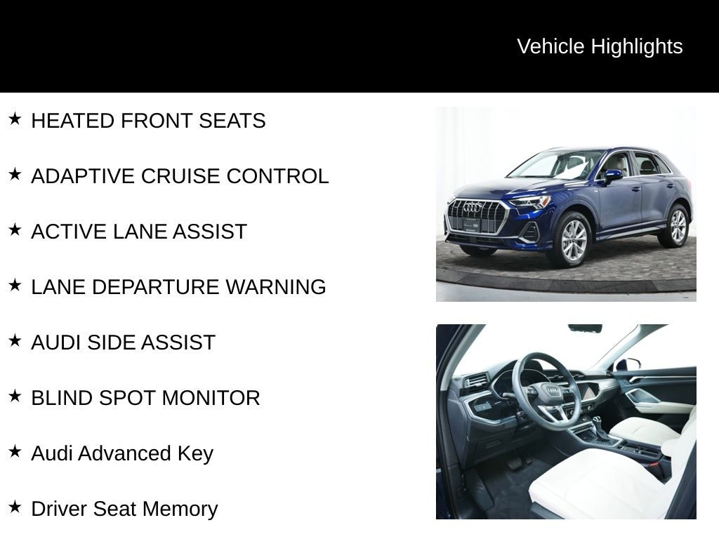 Audi Minneapolis is proud to present this: Price does not include $350 doc fee. 2025 Audi Q3 Premium S Line quattro quattro 2.0L 4-Cylinder TFSI