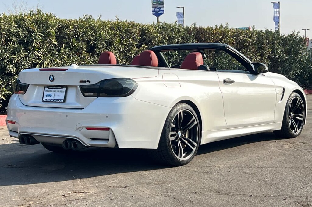Lithia Ford and Lincoln of Fresno is pleased to offer this Mineral White Metallic 2015 BMW M4 for purchase, this vehicle is well equipped with many features including: Executive Package (Comfort Access Keyless Entry, Head-Up Display, Heated Steering Wheel, Neck Warmer, Park Distance Control, Rear-View Camera, Retractable Headlight Washers, and Satellite Radio w/1 Year Subscription), Lighting Package (Adaptive Full LED Lights and Automatic High Beams), BMW Certified, M Carbon Ceramic Brake, Power convertible roof, 4-Wheel Disc Brakes, 9 Speakers, ABS brakes, Active Blind Spot Detection, Active Driving Assistant, Adaptive M Suspension, Air Conditioning, Alloy wheels, AM/FM radio, Auto-dimming door mirrors, Auto-dimming Rear-View mirror, Automatic temperature control, Black Chrome Highlight Trim Finishers, Brake assist, Bumpers: body-color, CD player, Convertible HardTop, Convertible roof lining, Convertible roof wind blocker, Delay-off headlights, Driver door bin, Driver vanity mirror, Dual front impact airbags, Dual front side impact airbags, DVD-Audio, Electronic Stability Control, Emergency communication system, Enhanced USB & Bluetooth w/Smartphone Integration, Extended Merino Leather Upholstery, Four wheel independent suspension, Front anti-roll bar, Front Bucket Seats, Front Center Armrest, Front dual zone A/C, Front reading lights, Fully automatic headlights, Garage door transmitter, Glass rear window, Harman/Kardon Surround Sound System, Heated door mirrors, Heated front seats, Heated Front Sport Seats, High intensity discharge headlights: Bi-xenon, Illuminated entry, Integrated roll-over protection, Knee airbag, Leather Shift Knob, Leather steering wheel, Low tire pressure warning, Memory seat, Navigation System, Occupant sensing airbag, Outside temperature display, Panic alarm, Passenger door bin, Passenger vanity mirror, Power door mirrors, Power driver seat, Power passenger seat, Power steering, Power windows, Radio data system, Radio: AM/FM Audio System, Rain sensing wipers, Rear air conditioning, Rear anti-roll bar, Rear reading lights, Rear seat center armrest, Rear window defroster, Remote keyless entry, Security system, Side & Top View Cameras, Speed control, Speed Limit Info, Speed-sensing steering, Speed-Sensitive Wipers, Sport steering wheel, Steering wheel mounted audio controls, Tachometer, Telescoping steering wheel, Tilt steering wheel, Traction control, Trip computer, Turn signal indicator mirrors, Variably intermittent wipers, Wheels: 18 x 9 Front & 18 x 10 Rear, and Wheels: 19 x 9 Fr & 19 x 10 Rr Blk Light Alloy. RWD 3.0L I6 6-Speed Manual
