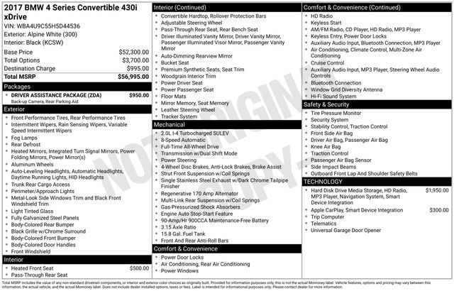 2017 BMW 4 Series 430i xDrive 2D Convertible AWD 8-Speed Automatic 2.0L 4-Cylinder TwinPower Turbo