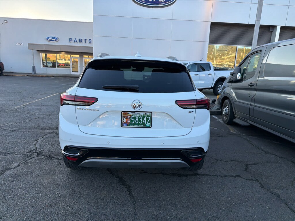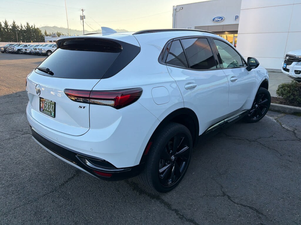 COMFORT AND CONVENIENCE PACKAGE includes (TC2) Hands-free power liftgate, (UVD) heated steering wheel, (KA1) heated driver and front passenger seats, (BTV) Remote vehicle starter system, (CJ2) dual-zone air conditioning, (IOS) 10.2 diagonal Buick Infotainment System, (UQG) 7-speaker enhanced audio system with amplifier, (USK) air quality indicator and (UEC) automatic air quality indicator/sensor (Vehicles built prior to 11-15-21 include heated driver and front passenger seats. Certain vehicles built on or after 11-15-21, will be forced to include (00V) Not Equipped with Heated Driver and Front Passenger Seats, which removes heated driver and front passenger seats. See dealer for details or the window label for the features on a specific vehicle. Vehicles built prior to 11-22-21, include, SPORT TOURING PACKAGE includes (PYS) 20 wheels with Dark finish, unique ST Badging, Dark finish grille surround and mesh inserts, (V5H) Black roof rails, (D75) body-color door handles, (PJV) lower trim/wheel arch moldings, exhaust bezels, window trim and mirror caps with Dark Gloss finish, (CGY) rear cargo compartment cover, headrests with the Sport Touring logo, (B50) Carpeted front floor mats with Sport Touring logo and rear floor mats and (JF5) sport pedals, SAFETY PACKAGE includes (UKC) Lane Change Alert with Side Blind Zone Alert and (UFG) Rear Cross Traffic Alert. AUDIO SYSTEM, 10.2 DIAGONAL BUICK INFOTAINMENT SYSTEM includes multi-touch display, AM/FM/SiriusXM stereo, Bluetooth® streaming audio for music and most phones, Wireless Apple CarPlay®/Wireless Android Auto® for compatible phones, advanced voice recognition, in-vehicle apps, personalized profiles for infotainment and vehicle settings, ENGINE, 2.0L TURBO, 4-CYLINDER, SIDI (228 hp [170 kW] @ 5000 rpm, 258 lb-ft of torque [350 N-m] @ 1500-4000 rpm) (STD), TRANSMISSION, 9-SPEED AUTOMATIC (STD). 2022 Buick Envision with Summit White exterior and Ebony seats interior features a 4 Cylinder Engine with 228 HP at 5000 RPM*. Non-Smoker vehicle