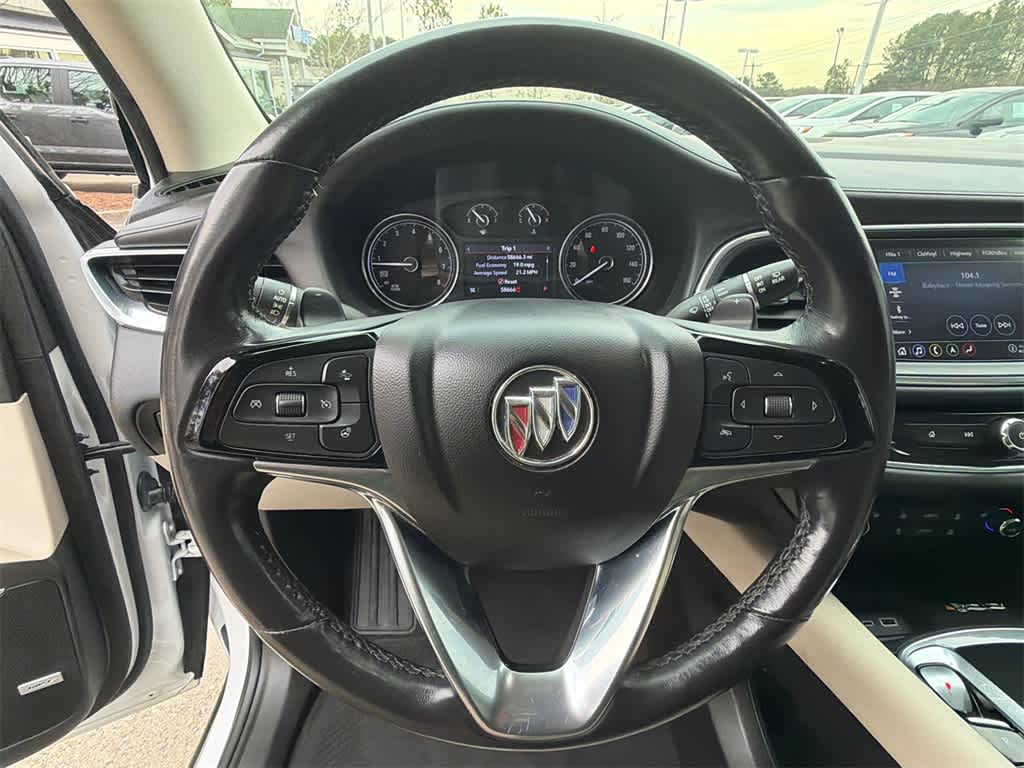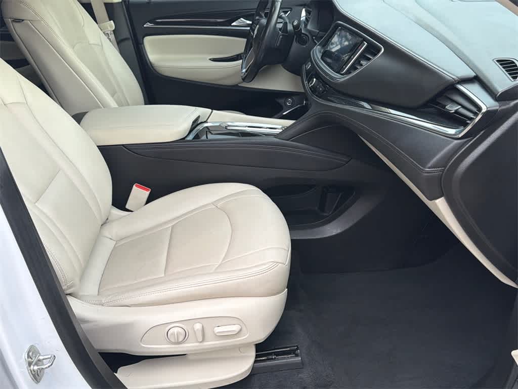 Enclave Essence is nicely equipped with Experience Buick Package (Front Power Sliding Moonroof), Preferred Equipment Group 1SL (Front & Rear Park Assist and Heated Steering Wheel), Sound & Sites Package (120-Volt Power Outlet, Bose Performance-Enhanced 10-Speaker System, Radio: Buick Infotainment Sys AM/FM Stereo w/Nav, and SiriusXM w/360L), Ford Blue Certified Non-Ford Certified, FWD, 18 Aluminum Wheels, 20 Polished Aluminum Wheels, 3.49 Axle Ratio, 3rd row seats: split-bench, 4-Wheel Disc Brakes, 6 Speakers, 6-Speaker Audio System Feature, 6-Way Power Front Passenger Seat Adjuster, 7-Passenger Seating, 8-Way Power Driver Seat Adjuster, ABS brakes, Air Conditioning, Alloy wheels, AM/FM radio: SiriusXM with 360L, Auto High-beam Headlights, Auto-dimming door mirrors, Auto-dimming Rear-View mirror, Automatic temperature control, Brake assist, Bumpers: body-color, Compass, Delay-off headlights, Driver door bin, Driver vanity mirror, Dual front impact airbags, Dual front side impact airbags, Electronic Stability Control, Emergency communication system: OnStar and Buick connected services capable, Four wheel independent suspension, Front anti-roll bar, Front Bucket Seats, Front Center Armrest, Front dual zone A/C, Front reading lights, Fully automatic headlights, Garage door transmitter, Heated door mirrors, Heated Driver & Front Passenger Seats, Heated front seats, Heated steering wheel, Illuminated entry, Leather steering wheel, Low tire pressure warning, Occupant sensing airbag, Outside temperature display, Overhead airbag, Overhead console, Panic alarm, Passenger door bin, Passenger vanity mirror, Perforated Leather-Appointed Seat Trim, Power door mirrors, Power Driver Lumbar Control Seat Adjuster, Power driver seat, Power Liftgate, Power Passenger Lumbar Control Seat Adjuster, Power passenger seat, Power steering, Power windows, Premium audio system: Buick Infotainment System, Radio data system, Radio: Buick Infotainment System AM/FM Stereo, Rear air conditioning, Rear anti-roll bar, Rear reading lights, Rear window defroster, Rear window wiper, Remote keyless entry, Roof rack: rails only, Security system, Speed control, Speed-sensing steering, Spoiler, Steering wheel mounted audio controls, Tachometer, Telescoping steering wheel, Tilt steering wheel, Traction control, Trip computer, Turn signal indicator mirrors, Variably intermittent wipers, Voltmeter, and Wireless Apple CarPlay/Wireless Android Auto.