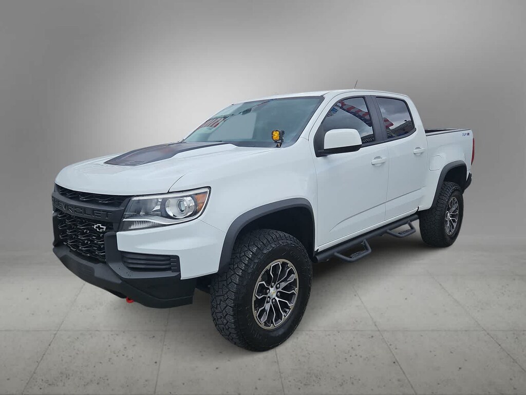 Get behind the wheel in our Accident Free 2021 Chevrolet Colorado ZR2 Crew Cab 4X4 in Summit White that is here for road trips that dont involve roads at all! Powered by a 3.6 Liter V6 generating 308hp paired to an 8 Speed Automatic transmission. This Four Wheel Drive truck also features a Multimatic DSSV damping system, front/rear electronic locking differentials, and a 2-inch lift kit to conquer the toughest terrain. It returns nearly 18mpg on the highway, too. A widened stance and lettered Chevrolet grille lead the way for style with projector-beam headlamps, fog lamps, running boards, alloy wheels, a corner step rear bumper, and a remote-locking EZ-Lift and Lower tailgate.