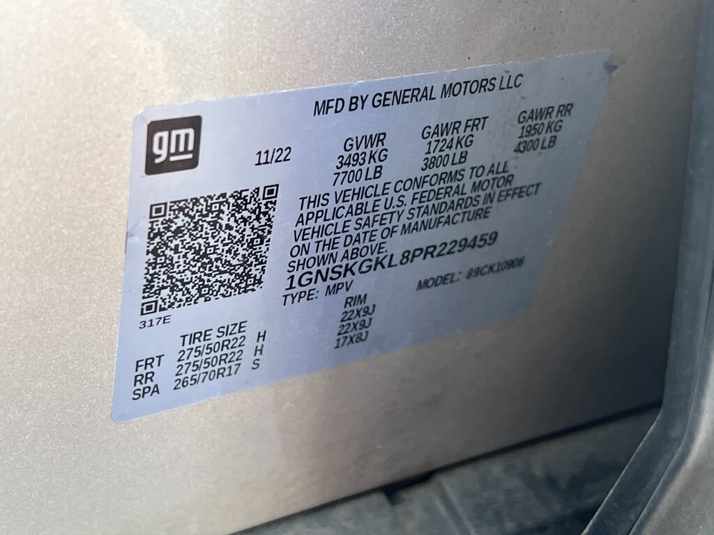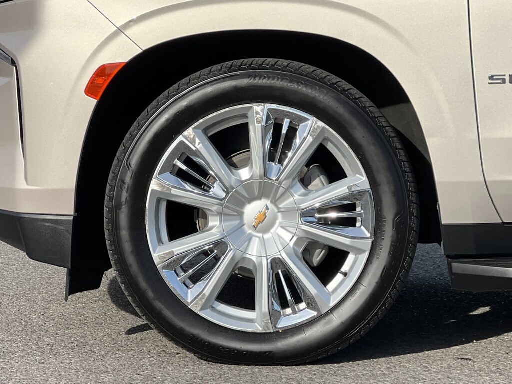 Certified. Empire Beige Metallic 2023 Chevrolet Suburban High Country 4WD 10-Speed Automatic with Overdrive EcoTec3 6.2L V8 15 Diagonal Multi-Color Head-Up Display, 1st & 2nd Row Color-Keyed Carpeted Floor Mats, 2-Speed Active Electronic AutoTrac Transfer Case, 3rd Row 60/40 Power-Folding Split-Bench, Advanced Trailering Package, Bose 10-Speaker Surround w/CenterPoint, Bright Front & Rear Door Sill Plates, Chrome Door Handles w/Body-Color Strip, Color-Keyed Carpeting Floor Covering, Driver & Front Outboard Passenger Airbags, Dual Exhaust System, Enhanced Automatic Emergency Braking, Enhanced Driver Information Center, Extra Capacity Cooling System, Floor Console, Hands-Free Rear Power Programmable Liftgate, HD Surround Vision, Heated & Ventilated Driver & Front Passenger Seats, Heated 2nd Row Outboard Seats, Heated Driver & Front Passenger Seats, Heated Steering Wheel, Hill Descent Control, Hitch Guidance w/Hitch View, Infotainment Display, Inside Rearview Auto-Dimming Rear Camera Mirror, Integrated Trailer Brake Controller, Lane Change Alert w/Side Blind Zone Alert, LED Daytime Running Lamps, License Plate Front Mounting Package, Max Trailering Package, Memory Settings, Navigation System, Outside Heated Power-Adjustable Mirrors, Power Release 2nd Row Bucket Seats, Power Tilt & Telescopic Steering Column, Preferred Equipment Group 3LZ, Rear Camera Mirror Washer, Rear Cross Traffic Alert, Rear Pedestrian Alert, Remote Start, Safety Alert Seat, SiriusXM Radio w/360L, Smart Trailer Integration Indicator, Trailer Side Blind Zone Alert, Universal Home Remote, Wireless Charging, Wrapped Steering Wheel. One owner