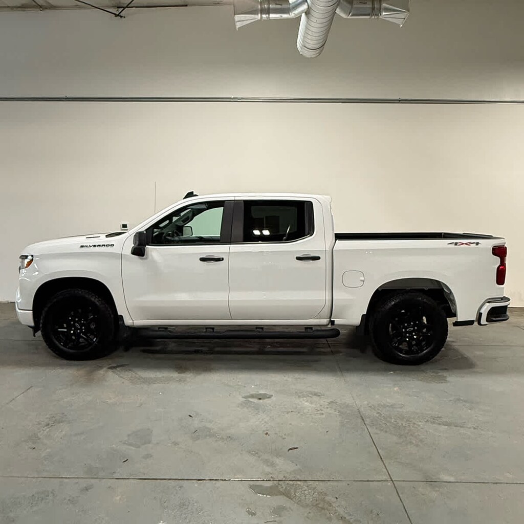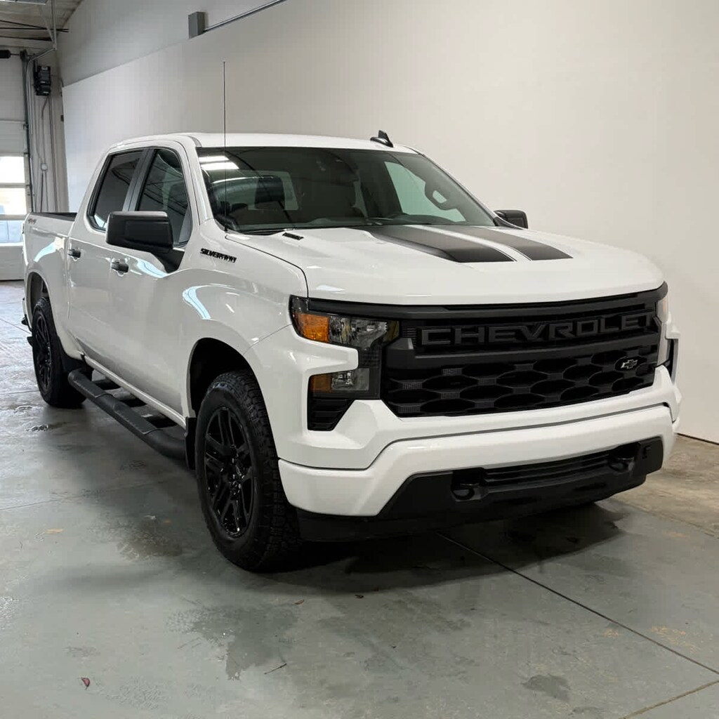 includes Black Rally Stripes (hood & tailgate), Black CHEVROLET tailgate lettering (inset), Black Silverado and trim level badging and (RVS) Black assist steps, LPO Includes (RD5) 20 High gloss Black painted aluminum wheels, Black Bowties (steering wheel horn pad and front grille), (CGN) Chevytec spray-on bedliner and (VTA) Black Chrome exhaust tip, LPO. AUTO-LOCKING REAR DIFFERENTIAL, 7 diagonal HD color touchscreen, AM/FM stereo, Bluetooth® audio streaming for 2 active devices, voice command pass-through to phone, Wireless Apple CarPlay® and Wireless Android Auto® compatibility (STD), (310 hp [231 kW] @ 5600 rpm, 430 lb-ft of torque [583 Nm] @ 3000 rpm) (STD), with overdrive and tow/haul mode. Includes Cruise Grade Braking and Powertrain Grade Braking (STD). Chevrolet Custom with Summit White exterior and Jet Black interior features a 4 Cylinder Engine with 310 HP at 5600 RPM*.