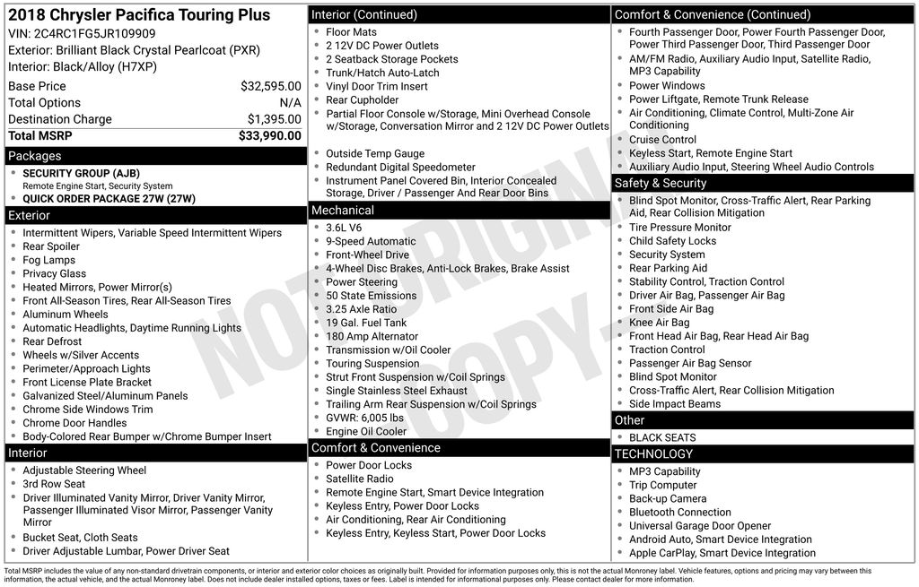 Don't just take our word for it â" come and see for yourself why the 2018 Chrysler Pacifica Touring Plus is the ultimate choice for your next family vehicle. We're confident that once you take it for a test drive, you'll be convinced that this is the perfect fit for your lifestyle. Visit us today and let us help you discover the freedom and convenience that the Pacifica Touring Plus has to offer.