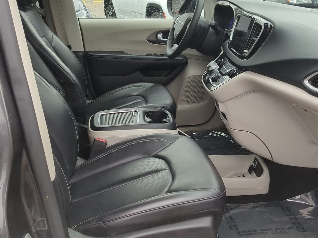 Comfort, space, and modern family features. This Pacifica Touring L offers leather seating, heated front seats, power sliding doors, power liftgate, remote start, advanced safety tech, and Uconnect with Apple CarPlay/Android Auto. Smooth ride, quiet cabin, and versatile Stow ??n Go seating. Fully inspected and ready for your family.