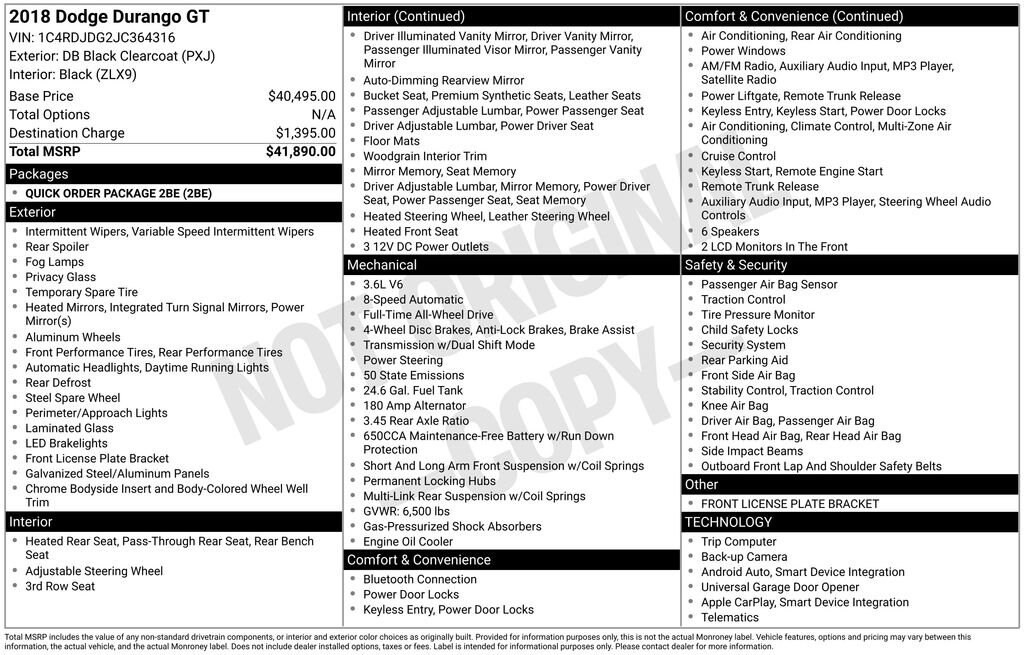 Experience the power, capability, and refined features of the 2018 Dodge Durango GT. Visit our showroom today and let us demonstrate how this impressive SUV can enhance your driving experience and exceed your expectations. We're confident you'll be impressed by the Durango's combination of performance, technology, and versatility.