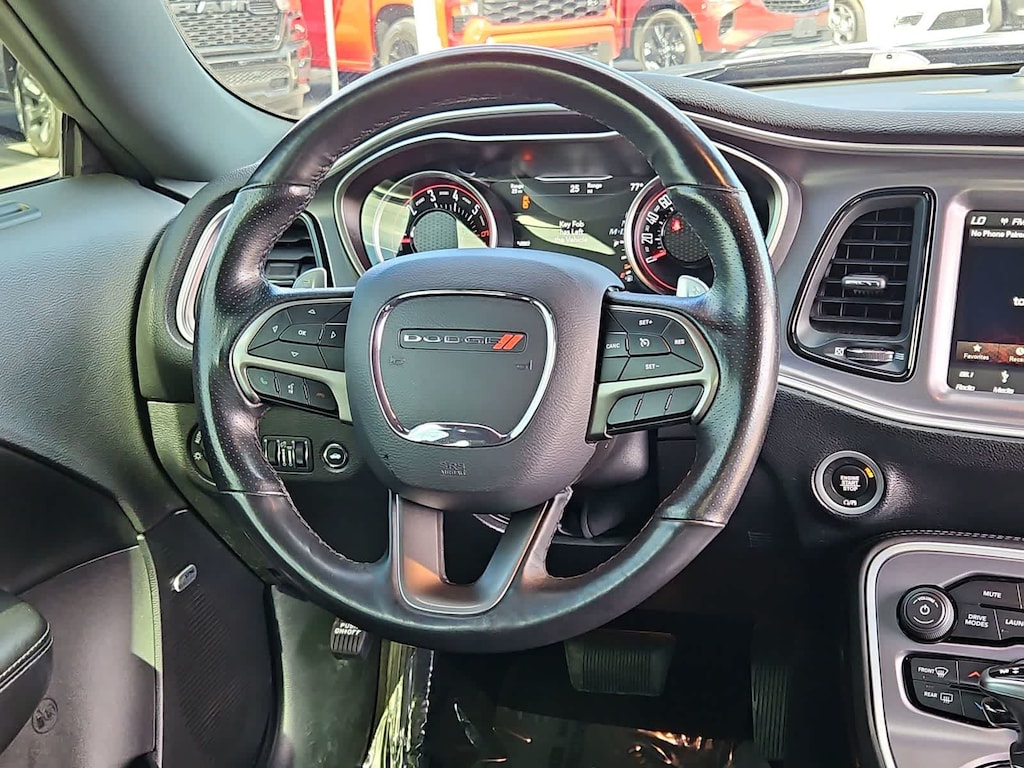 Strap yourself into the cockpit of our R/T Scat Pack and youre treated to premium cloth heated front seats, a heated sport-style leather-wrapped steering wheel, dual-zone automatic climate control, and a Uconnectî 4C infotainment system with Android Autoî/Apple CarPlayî, Bluetoothî, WiFi compatibility, and a six-speaker Alpine audio system. And remember, the Challengers cabin and trunk are roomy enough for everyday practicality.