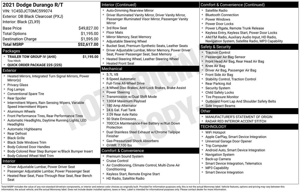 With its stunning good looks, powerful performance, and exceptional warranty coverage, this 2021 Dodge Durango R/T is an exceptional value at just $30,987. Experience the ultimate in SUV capability and refinement â" schedule a test drive today and discover why the Durango R/T is the perfect choice for your next vehicle.