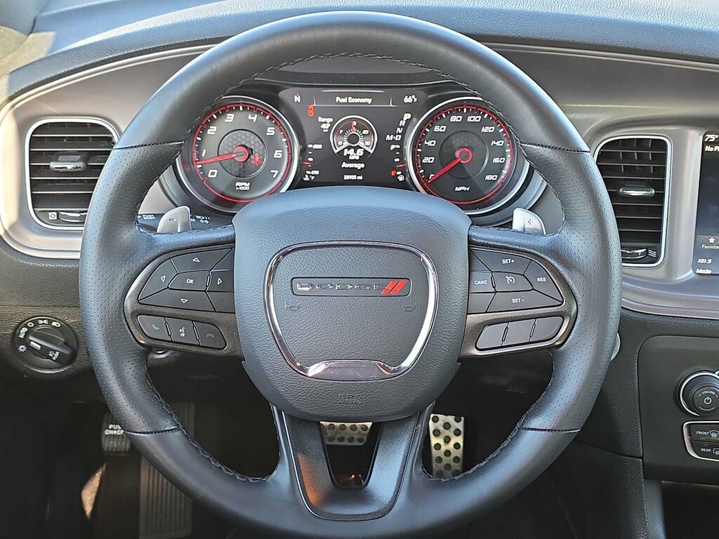 A driver-focused layout greets you in our Scat Pack cabin with heated cloth front sport seats, eight-way power for the driver, a heated leather steering wheel, dual-zone temperature control, bright pedals, keyless access/ignition, and remote start. Digital domination is standard with an 8.4-inch touchscreen, voice recognition, Android Autoî, Apple CarPlayî, Bluetoothî, WiFi compatibility, and an Alpine audio system. Theres ample trunk space, too!