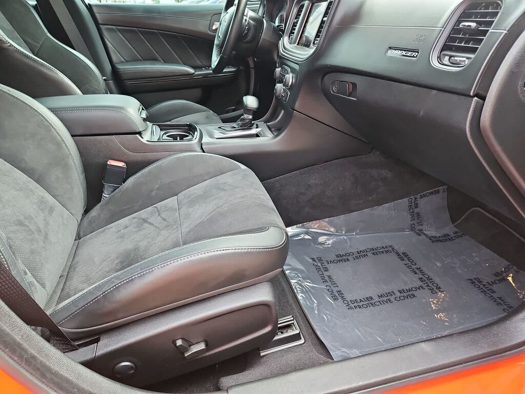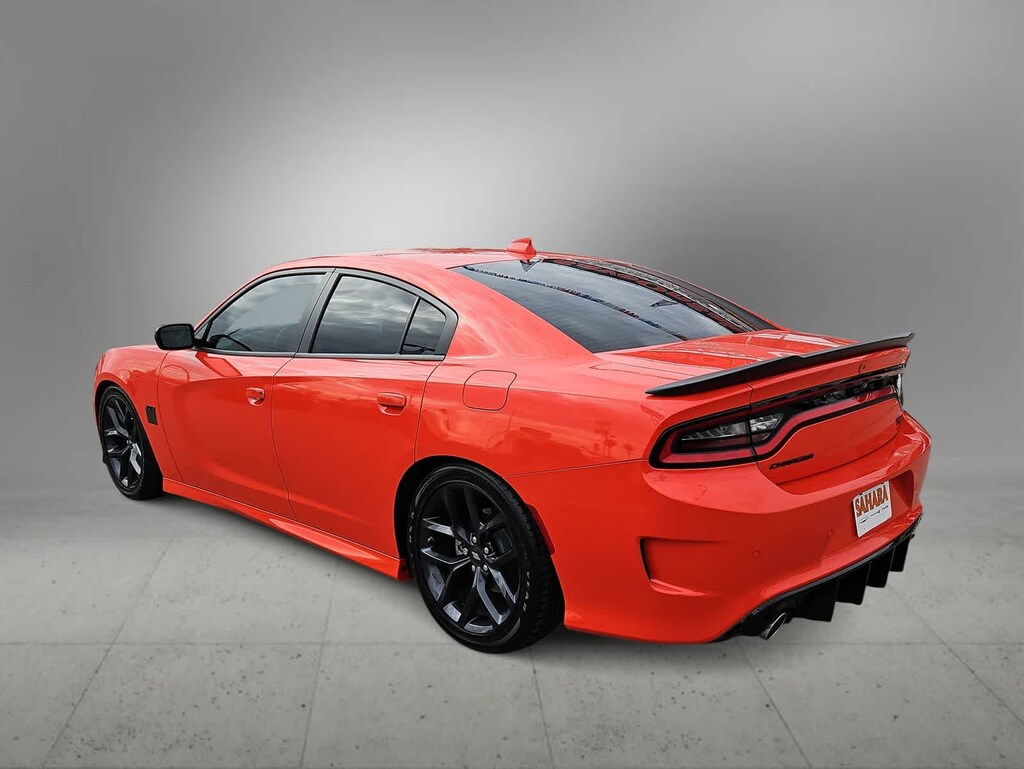 Driven to win, our 2023 Dodge Charger R/T Sedan with the Plus Pack is here to make some noise in Go Mango! Motivated by a 5.7 Liter HEMI V8 delivering 370hp to an 8 Speed Automatic transmission for an unmistakable source of muscle. This Rear Wheel Drive sedan also rides on a performance suspension for racing through the curves, and it achieves nearly 25mpg on the highway. Our Chargers full-strength design includes LED lighting, a bold black grille, a functional hood scoop, a one-piece rear spoiler, dual bright exhaust outlets, and 20-inch wheels, Rhombi center caps, and our Plus Packs LED fog lamps.
