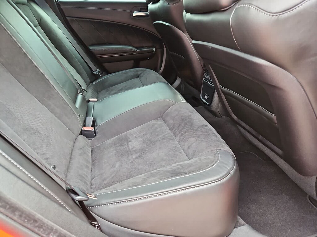Our R/T cabin is a comfortable command post for enthusiastic driving with our Plus Pack, which adds a huge sunroof, heated and ventilated Nappa leather/Alcantara front seats, a heated performance-style steering wheel, and a stitched dash panel to dual-zone temperature control, bright pedals, keyless access/ignition, and remote start. The 8.4-inch touchscreen, voice recognition, Android Autoî, Apple CarPlayî, Bluetoothî, WiFi compatibility, and an Alpine audio system enhance digital convenience. Theres ample space for the rest of your team, too!