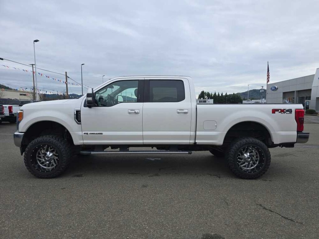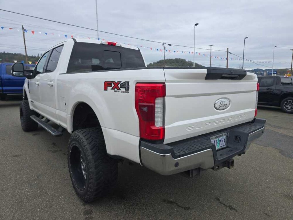 ENGINE: 6.7L POWER STROKE V8 TURBO DIESEL B20 4 valve OHV, manual push-button engine-exhaust braking and intelligent oil-life monitor, Extra Heavy-Duty 220 Amp Alternator, 34 Gallon Fuel Tank, GVWR: 11,500 lb Payload Package, 3.31 Axle Ratio, Dual 78-AH 750 CCA Batteries, LARIAT ULTIMATE PACKAGE Power Heated/Cooled Driver Seat w/Memory, PowerScope Trailer Tow Mirrors w/Memory, Automatic High Beam, rain-sensing windshield wipers, EASY ENTRY®/Exit Memory Drivers Seat Feature, Tailgate Step & Handle, LED Box Lighting, LED Center High-Mounted Stop Lamp (CHMSL), Intelligent Access w/Push-Button Start, Power Heated/Cooled Passenger Seat, Voice-Activated Navigation, HD and SiriusXM Traffic and Travel Link, Note: SiriusXM Traffic and Travel Link includes a, Services are not available in Alaska and Hawaii, Memory Power-Adjustable Pedals, Remote Start System, Twin Panel Power Moonroof, map lights and moonroof switches, Ambient Lighting, Power Telescoping/Tilt Steering Wheel/Column, heat, memory and audio controls, Remote Tailgate Release, WHEELS: 20 BRIGHT MACHINED CAST ALUMINUM magnetic painted pockets and bright hub covers/center ornaments, QUAD BEAM LED HEADLAMPS & LED TAILLAMPS LED fog lamps and LED Center High-Mounted Stop Lamp (CHMSL), ULTIMATE TRAILER TOW CAMERA SYSTEM 360 degree camera system and trailer reverse guidance, NOTE: Does not include customer placed trailer camera, Rear CHMSL Camera, Display in center stack screen, LED Center High-Mounted Stop Lamp (CHMSL) w/cargo light and rear video camera, BLIND SPOT INFORMATION SYSTEM (BLIS) cross-traffic alert and trailer tow (BLIS sensor in taillamp), TOUGH BED SPRAY-IN BEDLINER tailgate-guard, black box bed tie-down hooks and black bed attachment bolts, ELECTRONIC-LOCKING W/3.55 AXLE RATIO, REAR INFLATABLE SEAT BELTS, TRANSMISSION: TORQSHIFT 6-SPEED AUTOMATIC (6R140), SelectShift. 2017 Ford Super Duty F-350 SRW Pickup with White Platinum Metallic Tri-Coat exterior and Black interior features a 8 Cylinder Engine with 440 HP at 2800 RPM*. Non-Smoker vehicle