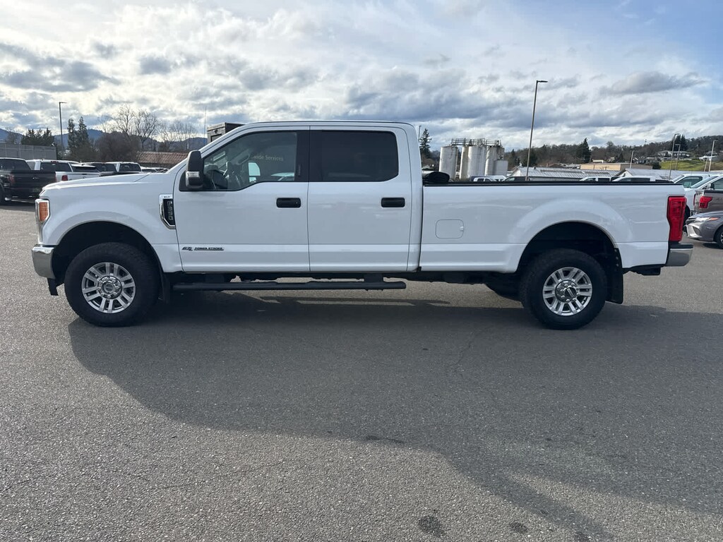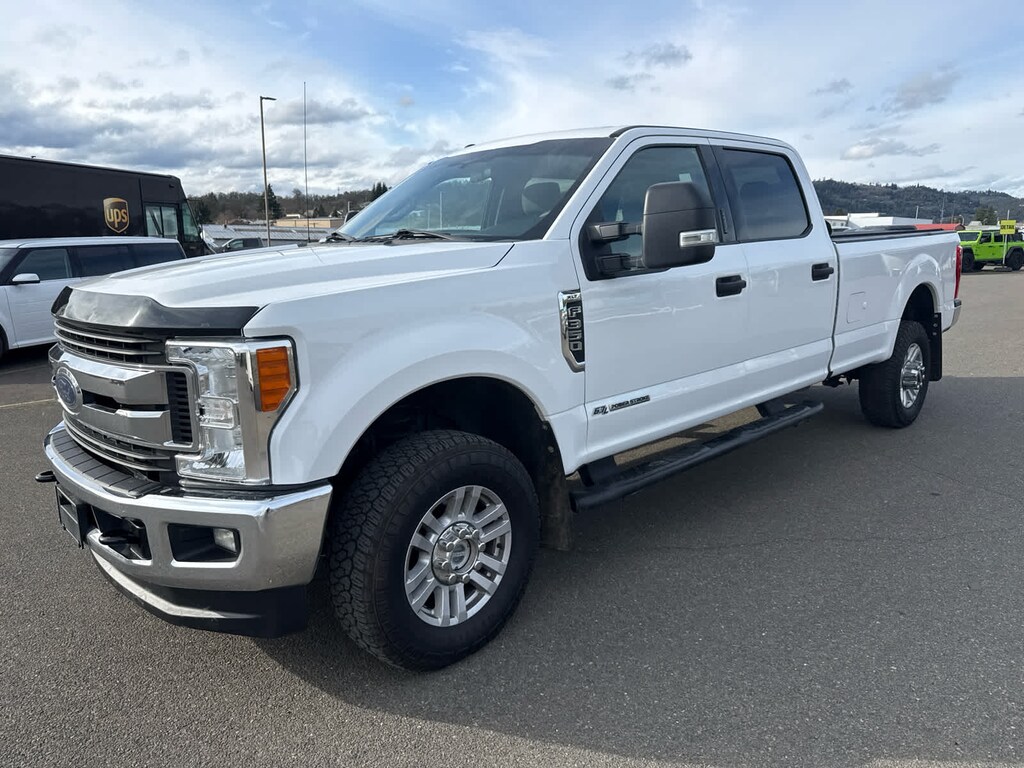 ENGINE: 6.7L POWER STROKE V8 TURBO DIESEL B20 4 valve OHV, manual push-button engine-exhaust braking and intelligent oil-life monitor, 48 Gallon Fuel Tank, 175 Amp Heavy Duty Alternator, GVWR: 11,500 lb Payload Package, 3.31 Axle Ratio, Dual 78-AH 750 CCA Batteries, XLT VALUE PACKAGE Power-Adjustable Pedals, SecuriCode Drivers Side Keyless Entry Keypad, Reverse Sensing System, 8-Way Power Drivers Seat, lumbar adjuster w/manual 2-way passenger adjuster, Autolock/Auto Unlock, Fog Lamps, ELECTRONIC-LOCKING W/3.55 AXLE RATIO, TAILGATE STEP & HANDLE, SPARE TIRE, WHEEL, CARRIER & JACK, TRANSMISSION: TORQSHIFT 6-SPEED AUTOMATIC (6R140), SelectShift. 2017 Ford Super Duty F-350 SRW Pickup with Oxford White exterior and Medium Earth Gray interior features a 8 Cylinder Engine with 440 HP at 2800 RPM*. Non-Smoker vehicle