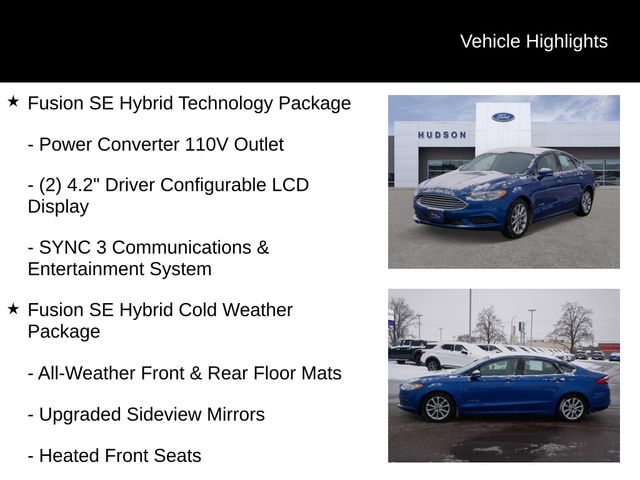 This 2017 Ford Fusion Hybrid SE is an efficient and stylish midsize sedan that combines fuel-saving hybrid performance with modern comfort and technology. Offered at Hudson Ford as a Ford Blue Certified vehicle, this Fusion features a striking Lightning Blue exterior paired with an Ebony interior, giving it a sleek presence on the road whether you're commuting or heading out for a weekend getaway.