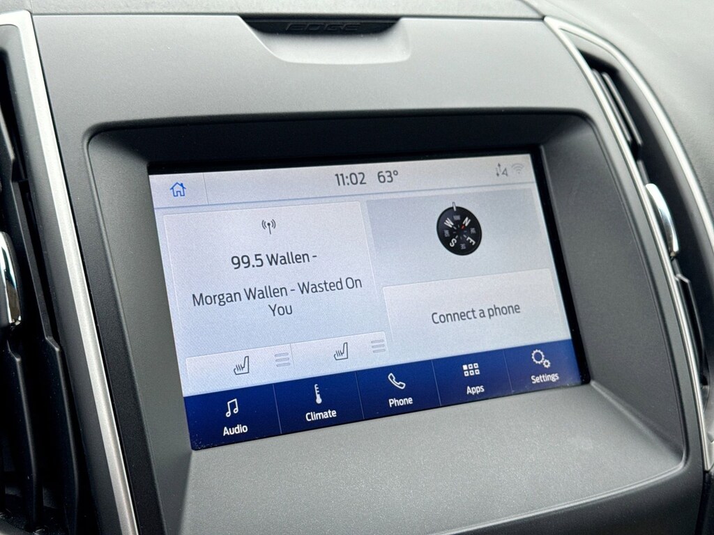 Recent Arrival! Clean CARFAX. Certified. 2020 Ford Edge SEL Is nicely equipped with Equipment Group 201A, Ford Blue Advantage: Blue Certified Certified, 110V/150W AC Power Outlet, 3.80 Axle Ratio, 4-Wheel Disc Brakes, 9 Speakers, ABS brakes, ActiveX Seating Material Heated Bucket Seats, Air Conditioning, Alloy wheels, AM/FM radio: SiriusXM, Auto High-beam Headlights, Auto-dimming Rear-View mirror, Automatic temperature control, Brake assist, Bumpers: body-color, Compass, Delay-off headlights, Driver door bin, Driver vanity mirror, Dual front impact airbags, Dual front side impact airbags, Electronic Stability Control, Emergency communication system: SYNC 3 911 Assist, Foot-Activated Hands-Free Liftgate, FordPass Connect, Four wheel independent suspension, Front anti-roll bar, Front Bucket Seats, Front Center Armrest w/Storage, Front dual zone A/C, Front fog lights, Front reading lights, Fully automatic headlights, Heated door mirrors, Heated front seats, Illuminated entry, Knee airbag, Low tire pressure warning, Occupant sensing airbag, Outside temperature display, Overhead airbag, Overhead console, Panic alarm, Passenger door bin, Passenger vanity mirror, Perimeter Alarm, Power door mirrors, Power driver seat, Power passenger seat, Power steering, Power windows, Premium 9 Speaker Audio System, Radio: AM/FM Stereo/MP3 Capable, Rain sensing wipers, Rear anti-roll bar, Rear reading lights, Rear seat center armrest, Rear window defroster, Rear window wiper, Remote keyless entry, Remote Start System, Roof rack: rails only, SiriusXM Radio, Speed control, Speed-Sensitive Wipers, Split folding rear seat, Spoiler, Steering wheel mounted audio controls, SYNC 3 Communications & Entertainment System, Tachometer, Telescoping steering wheel, Tilt steering wheel, Traction control, Trip computer, Turn signal indicator mirrors, Universal Garage Door Opener (UGDO), Variably intermittent wipers, Wheel-Locking Lug Nuts (Dealer Installed), and Wireless Charging Pad.
