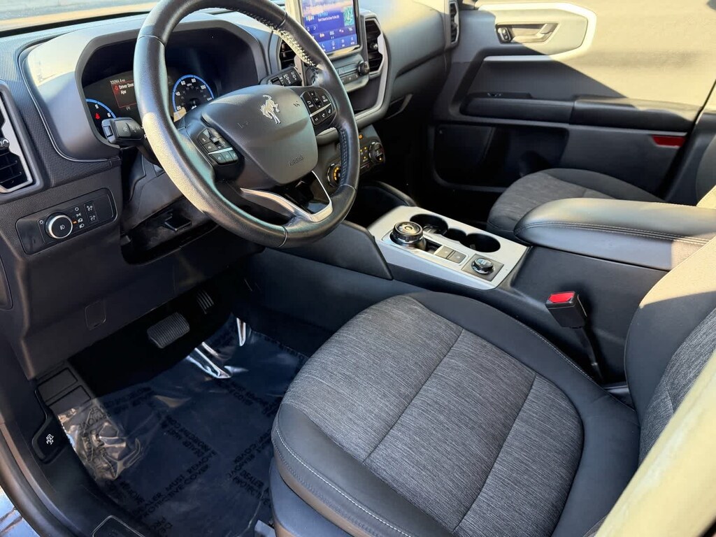 Big Bend Package (DISC) (Heated Front Bucket Seats, Leather-Wrapped Steering Wheel, Power Moonroof, Reverse Sensing System, and Wireless Charging Pad), Class II Trailer Tow Package w/Trailer Sway Control, Equipment Group 200A, Ford Co-Pilot360 Assist+ (Evasive Steering Assist, Intelligent Adaptive Cruise Control w/Stop & Go, and Voice-Activated Touchscreen Navigation System), Certified Select Certified, 3.80 Axle Ratio, 4-Wheel Disc Brakes, 6 Speakers, ABS brakes, Air Conditioning, Alloy wheels, AM/FM radio: SiriusXM, AM/FM Stereo, Auto High-beam Headlights, Automatic temperature control, Brake assist, Compass, Delay-off headlights, Driver door bin, Driver vanity mirror, Dual front impact airbags, Dual front side impact airbags, Electronic Stability Control, Emergency communication system: SYNC 3 911 Assist, Exterior Parking Camera Rear, Four wheel independent suspension, Front anti-roll bar, Front Bucket Seats, Front Center Armrest, Front fog lights, Front reading lights, Fully automatic headlights, Heated door mirrors, Illuminated entry, Knee airbag, Low tire pressure warning, Occupant sensing airbag, Outside temperature display, Overhead airbag, Overhead console, Panic alarm, Passenger door bin, Passenger vanity mirror, Power door mirrors, Power steering, Power windows, Radio data system, Rear anti-roll bar, Rear reading lights, Rear seat center armrest, Rear window defroster, Rear window wiper, Remote keyless entry, Roof rack: rails only, Security system, SiriusXM Radio, Speed control, Speed-sensing steering, Speed-Sensitive Wipers, Split folding rear seat, Steering wheel mounted audio controls, SYNC 3 Communications & Entertainment System, SYNC 3/Apple CarPlay/Android Auto, Tachometer, Telescoping steering wheel, Tilt steering wheel, Traction control, Trip computer, Unique Cloth Front Bucket Seats, Variably intermittent wipers, Wheels: 17 Carbonized Gray-Painted Aluminum, and Wheels: 18 Ebony Black-Painted Aluminum (DISC) Certified. Shadow Black 2021 Ford Bronco Sport Big Bend Priced below KBB Fair Purchase Price! 4WD 8-Speed Automatic 1.5L EcoBoost