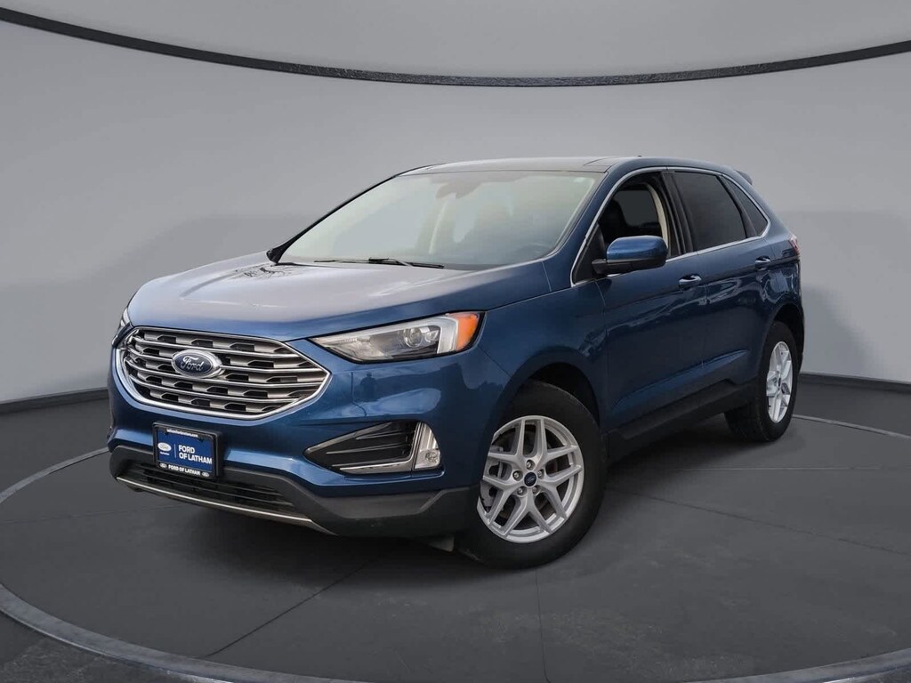 Certified. Atlas Blue Metallic 2022 Ford Edge SEL 4D Sport Utility AWD 8-Speed Automatic EcoBoost 2.0L I4 GTDi DOHC Turbocharged VCT 21/28 City/Highway MPG