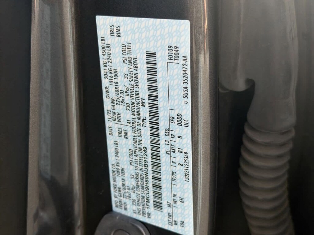 Certified. Carbonized Gray Metallic 2022 Ford Escape SEL 4D Sport Utility AWD 8-Speed Automatic 1.5L EcoBoost 26/31 City/Highway MPG