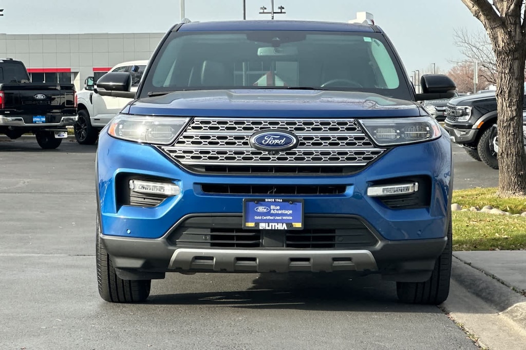 TWIN PANEL MOONROOF remote control front windows (opens front windows from outside of the vehicle via the key fob), EQUIPMENT GROUP 301A Limited Convenience Package, Memory Drivers Seat, Power Tilt/Telescoping Steering Column, Hands-Free Foot-Activated Liftgate, 3rd Row PowerFold Seat, Folds flat, 110V/150W AC Power Outlet, Replaces the powerpoint port on the rear side of the center floor console, Sideview Mirrors w/Gloss Black Caps, power-folding w/Autofold, power and heated glass, LED turn signal indicators, security approach lamps, driver and passenger side memory, CLASS IV TRAILER TOW PACKAGE, TRANSMISSION: 10-SPEED AUTOMATIC (STD). 2022 Ford Explorer with Atlas Blue exterior and Ebony interior features a 4 Cylinder Engine with 300 HP at 5500 RPM*.