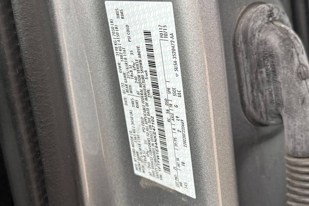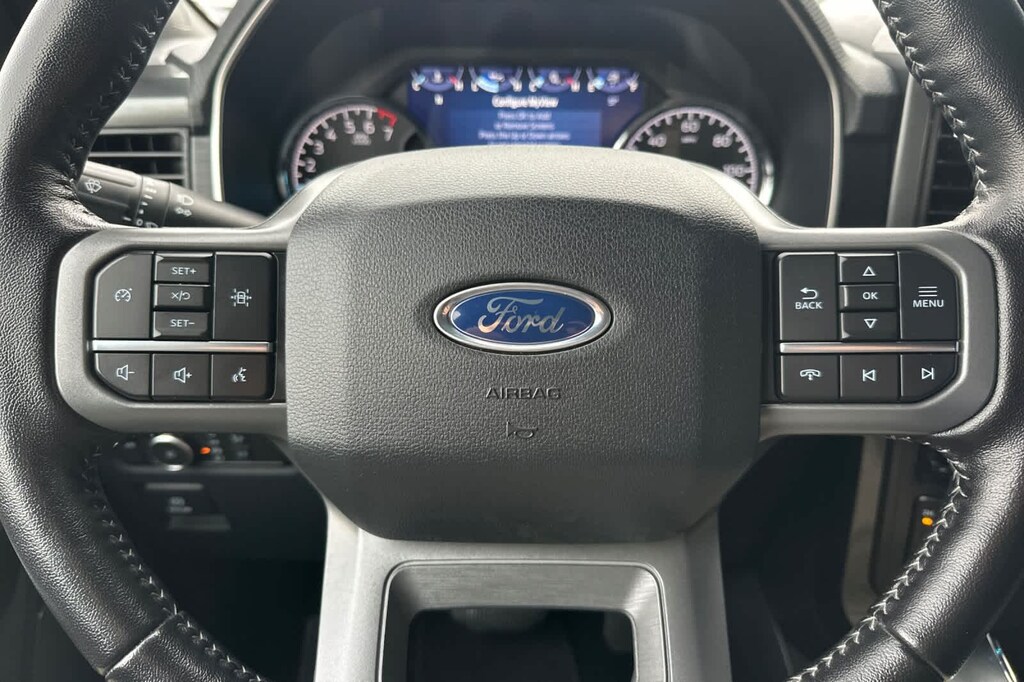 EQUIPMENT GROUP 302A HIGH Class IV Trailer Hitch Receiver, towing capability up to TBD lbs, on 3.3L V6 PFDI engine (99B) and 2.7L EcoBoost engine (99P) or up to TBD lbs, on 3.5L EcoBoost engine (998) and 5.0L V8 engine (995), 7/4-pin connector, class IV trailer hitch receiver, smart trailer tow connector ( BLIS w/trailer tow coverage where BLIS is available), XLT Chrome Appearance Package, lower grille trim, Chrome Single-Tip Exhaust, Tires: 275/65R18 BSW Automatic Transmission, Chrome Door & Tailgate Handles w/Body-Color Bezel, bezel on side doors and black on tailgate, Wheels: 18 Chrome-Like PVD, 2-Bar Style Grille w/Chrome 2 Minor Bars, silver painted surround and black background mesh, Bright Polished Step Bars, Zone Lighting, Leather-Wrapped Steering Wheel, Intelligent Access w/Push Button Start, ENGINE: 3.5L V6 ECOBOOST GVWR: 7,050 lbs Payload Package, 3.31 Axle Ratio, ELECTRONIC LOCKING W/3.55 AXLE RATIO, XLT SPORT APPEARANCE PACKAGE body-color wheellip moldings and unique interior finish, Box Side Decals, Chrome Single-Tip Exhaust, Body-Color Door & Tailgate Handles, body-color bezel on side doors and black on tailgate, Tires: 275/65R18 BSW Automatic Transmission, Wheels: 18 6-Spoke Machined Aluminum, gloss black painted pockets, Accent-Color Step Bars, Body-Color Front & Rear Bumpers, body-color front fascia, Black 2-Bar Style Grille w/Black Surround/Accents, TRANSMISSION: ELECTRONIC 10-SPEED AUTOMATIC selectable drive modes: normal, ECO, sport, tow/haul, slippery, deep snow/sand and mud/rut (STD). 2022 Ford F-150 with Iconic Silver exterior and Black interior features a V6 Cylinder Engine with 290 HP at 6500 RPM*.