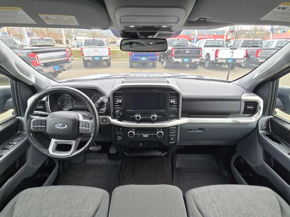 ENGINE: 5.0L V8 GVWR: 7,050 lbs Payload Package, 3.31 Axle Ratio, EQUIPMENT GROUP 301A MID Class IV Trailer Hitch Receiver, towing capability up to TBD lbs, on 3.3L V6 PFDI engine (99B) and 2.7L EcoBoost engine (99P) or up to TBD lbs, on 3.5L EcoBoost engine (998) and 5.0L V8 engine (995), 7/4-pin connector, class IV trailer hitch receiver, smart trailer tow connector ( BLIS w/trailer tow coverage where BLIS is available), Leather-Wrapped Steering Wheel, Dual Zone Electronic Automatic Temperature Control, SecuriCode Drivers Side Keyless-Entry Keypad, 8 Productivity Screen in Instrument Cluster, SYNC 4 w/Enhanced Voice Recognition, 8 LCD capacitive touchscreen w/swipe capability, wireless phone connection, cloud connected, AppLink w/App catalog, 911 Assist, Apple CarPlay® and Android Auto® compatibility, digital owners manual, conversational voice, XLT CHROME APPEARANCE PACKAGE lower grille trim, Chrome Single-Tip Exhaust, Tires: 275/65R18 BSW Automatic Transmission, Chrome Door & Tailgate Handles w/Body-Color Bezel, bezel on side doors and black on tailgate, Wheels: 18 Chrome-Like PVD, 2-Bar Style Grille w/Chrome 2 Minor Bars, silver painted surround and black background mesh, Bright Polished Step Bars, ELECTRONIC LOCKING W/3.73 AXLE RATIO, POWER GLASS HEATED SIDEVIEW MIRRORS manual folding, turn signal and black skull caps, Auto-Dimming Rearview Mirror, TRANSMISSION: ELECTRONIC 10-SPEED AUTOMATIC selectable drive modes: normal, ECO, sport, tow/haul, slippery, deep snow/sand and mud/rut (STD), HALOGEN HEADLAMPS fog lamps. 2022 Ford F-150 with Iconic Silver exterior and Black w/Medium Dark Slate interior features a 8 Cylinder Engine with 290 HP at 6500 RPM*. Non-Smoker vehicle