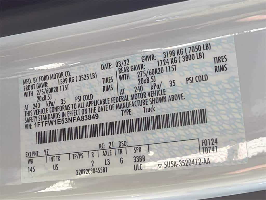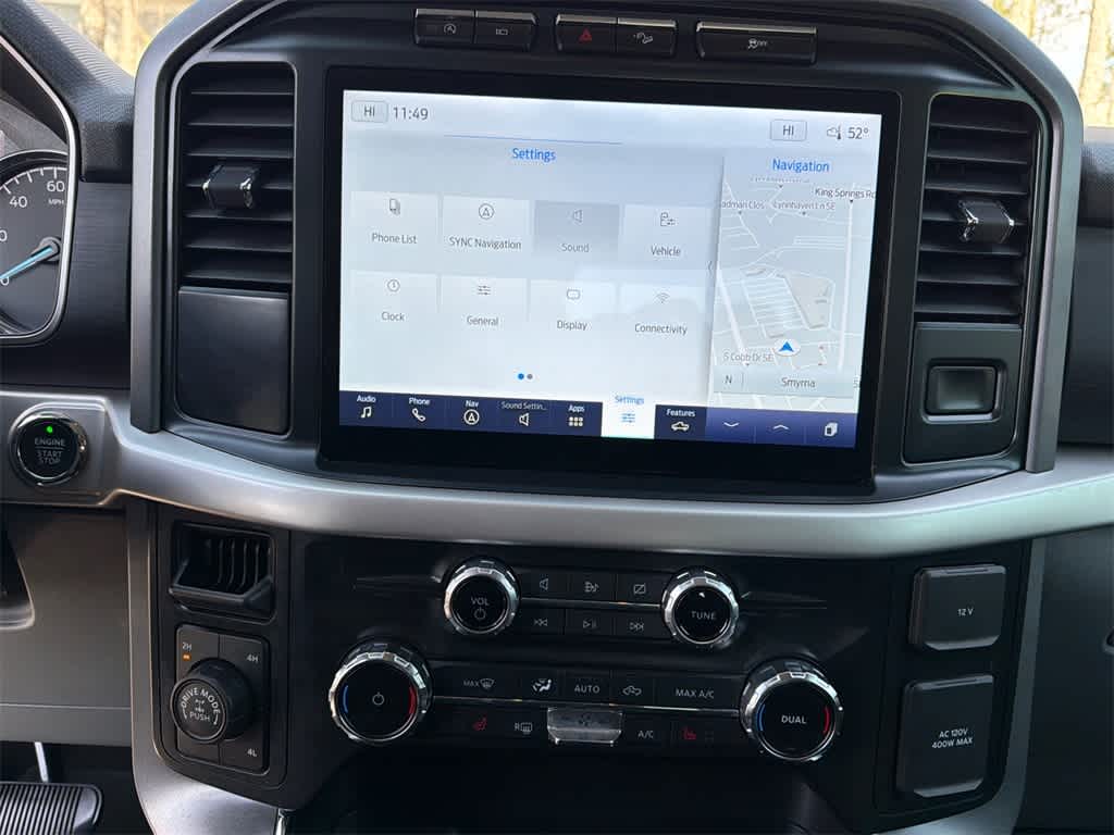F-150 XLT is nicely equipped with Equipment Group 302A High, FX4 Off-Road Package (Tray Style Floor Liner (47W)), Ford Blue Certified Certified, 4WD, 4-Wheel Disc Brakes, 6 Speakers, ABS brakes, Air Conditioning, Alloy wheels, AM/FM radio, Auto High-beam Headlights, Brake assist, Bumpers: chrome, Cloth 40/20/40 Front Seat, Compass, Delay-off headlights, Driver door bin, Driver vanity mirror, Dual front impact airbags, Dual front side impact airbags, Electronic Stability Control, Emergency communication system: SYNC 4 911 Assist, Exterior Parking Camera Rear, Front anti-roll bar, Front Center Armrest w/Storage, Front fog lights, Front reading lights, Front wheel independent suspension, Fully automatic headlights, Heated door mirrors, Illuminated entry, Low tire pressure warning, Occupant sensing airbag, Outside temperature display, Overhead airbag, Overhead console, Panic alarm, Passenger door bin, Passenger vanity mirror, Power door mirrors, Power steering, Power windows, Radio data system, Radio: AM/FM Stereo w/6 Speakers, Rear reading lights, Rear step bumper, Rear window defroster, Remote keyless entry, Security system, Speed control, Speed-sensing steering, Split folding rear seat, Steering wheel mounted audio controls, SYNC 4, Tachometer, Telescoping steering wheel, Tilt steering wheel, Traction control, Trip computer, Variably intermittent wipers, Voltmeter, Wheels: 17 Silver Painted Aluminum, and Wheels: 20 Chrome-Like PVD.