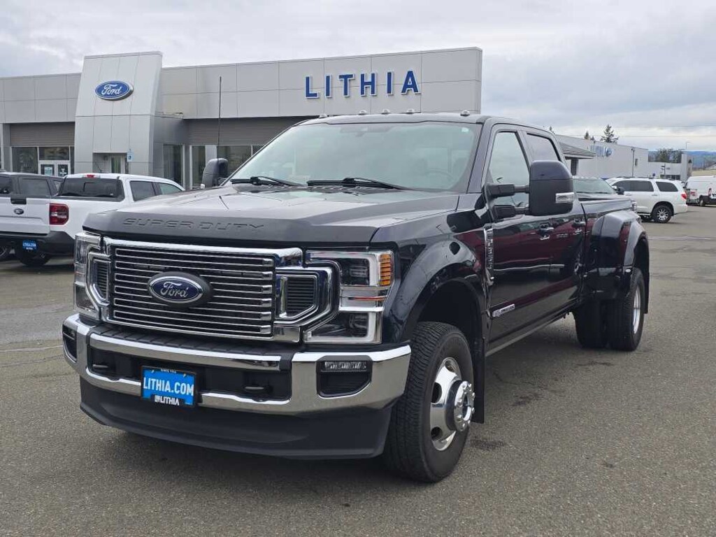 ENGINE: 6.7L 4V OHV POWER STROKE V8 TURBO DIESEL B20 manual push-button engine-exhaust braking and intelligent oil-life monitor, 48 Gallon Fuel Tank, 240 Amp Alternator (67D), 3.55 Axle Ratio, Dual 78-AH 750 CCA Batteries, LARIAT ULTIMATE PACKAGE Power Heated/Ventilated Driver Seat w/Memory, PowerScope Trailer Tow Mirrors w/Memory, EASY ENTRY®/Exit Memory Drivers Seat Feature, Tailgate Step & Handle, LED Box Lighting, LED Center High-Mounted Stop Lamp (CHMSL), Intelligent Access w/Push-Button Start, Power Heated/Ventilated Passenger Seat, Memory Power-Adjustable Pedals, Remote Start System, Ambient Lighting - Fixed Color, Power Telescoping/Tilt Steering Wheel/Column, memory and audio controls, Remote Tailgate Release, QUAD BEAM LED HEADLAMPS & LED TAILLAMPS LED fog lamps and LED Center High-Mounted Stop Lamp (CHMSL), POWER-DEPLOYABLE RUNNING BOARDS Front Splash Guards/Mud Flaps (Pre-Installed), ADAPTIVE CRUISE CONTROL & COLLISION WARNING brake support, TOUGH BED SPRAY-IN BEDLINER tailgate-guard, black box bed tie-down hooks and black bed attachment bolts, LIMITED SLIP W/3.55 AXLE RATIO, HEATED REAR SEATS, RAIN-SENSING WINDSHIELD WIPERS Heated Steering Wheel, TRANSMISSION: TORQSHIFT 10-SPEED AUTOMATIC SelectShift and selectable drive modes: normal, tow/haul, eco, deep sand/snow and slippery (STD). 2022 Ford Super Duty F-350 DRW Pickup with Antimatter Blue Metallic exterior and Black Onyx interior features a 8 Cylinder Engine with 475 HP at 2600 RPM*. Non-Smoker vehicle
