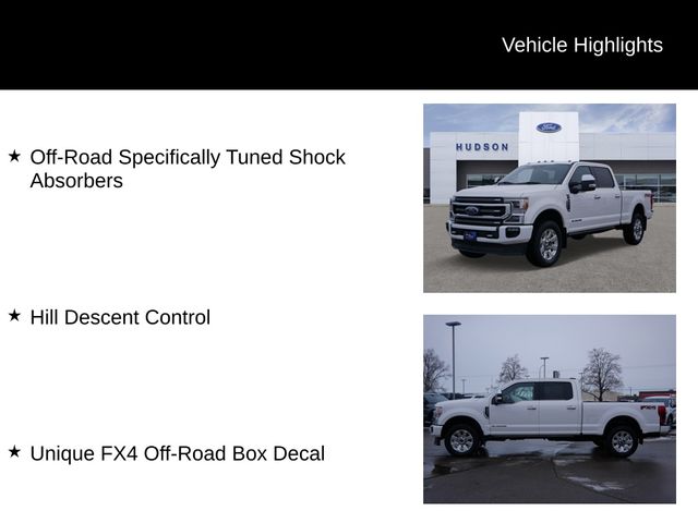 Command every job and every journey with this 2022 F-350 Super Duty Platinum, available at Hudson Ford. Combining best-in-class capability with premium luxury, the F-350 Platinum delivers the ultimate full-size heavy-duty truck experience. From its bold exterior design to its refined, high-tech interior, this Super Duty is built to perform and impress in any situation.
