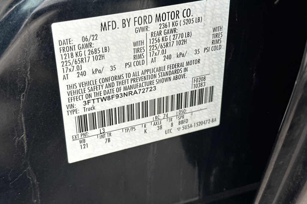 - Front tires: 225/65HR17.0