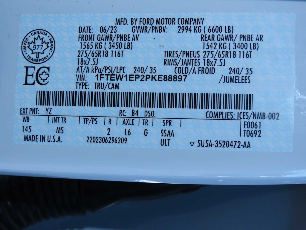 XLT CHROME APPEARANCE PACKAGE lower grille trim, Chrome Single-Tip Exhaust, Tires: 275/65R18 BSW Automatic Transmission, Chrome Door & Tailgate Handles w/Body-Color Bezel, bezel on side doors and black on tailgate, Wheels: 18 Chrome-Like PVD, 2-Bar Style Grille w/Chrome 2 Minor Bars, silver painted surround and black background mesh, Bright Polished Step Bars, ENGINE: 2.7L V6 ECOBOOST 3.55 Axle Ratio, GVWR: 6,600 lbs Payload Package, ELECTRONIC LOCKING W/3.73 AXLE RATIO, CLASS IV TRAILER HITCH RECEIVER towing capability up to TBD lbs, on 3.3L V6 PFDI engine (99B) and 2.7L EcoBoost engine (99P) or up to TBD lbs, on 3.5L EcoBoost engine (998) and 5.0L V8 engine (995), 7/4-pin connector, class IV trailer hitch receiver, smart trailer tow connector ( BLIS w/trailer tow coverage where BLIS is available), TRANSMISSION: ELECTRONIC 10-SPEED AUTOMATIC selectable drive modes: normal, ECO, sport, tow/haul, slippery, deep snow/sand and mud/rut (STD). MP3 Player, 4x4, Onboard Communications System, Privacy Glass, Keyless Entry, Child Safety Locks, Steering Wheel Controls.