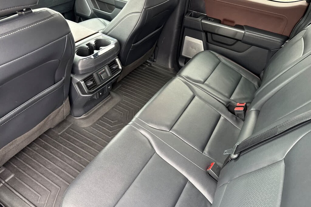 Its a Great Day at Lithia Ford Idaho Falls. New Price! Certified. Certified Pre-Owned Inspection, Interior and Exterior Professionally Detailed for Delivery, Professionally Detailed, Non-Smoker, Certified By Carfax - No Accidents, 3.5L PowerBoost Full-Hybrid V6, 4WD, 2nd Row Heated Seats, 360 Degree Camera, 4-Wheel Disc Brakes, ABS brakes, Adjustable pedals, Air Conditioning, Auto-dimming door mirrors, Auto-dimming Rear-View mirror, Automatic temperature control, BoxLink, Brake assist, Center High-Mounted Stop Lamp CHMSL Camera Removal, Class IV Trailer Hitch Receiver, Electronic Stability Control, Equipment Group 502A High, Exterior Parking Camera Rear, Ford Co-Pilot360 Assist 2.0, Front Bucket Seats, Front dual zone A/C, Garage door transmitter, Heated door mirrors, Heated front seats, Heated steering wheel, Intelligent Adaptive Cruise Control w/Stop & Go, Leather-Trimmed Bucket Seats, LED Projector w/Dynamic Bending Headlamps, LED Sideview Mirror Spotlights, Memory seat, Navigation system: Connected Navigation, Pedal memory, Power door mirrors, Power driver seat, Power passenger seat, Power steering, Power Tailgate, Power Telescoping/Glass/Folding Trailer Tow Mirrors, Power Tilt/Telescoping Steering Column w/Memory, Power windows, Pro Power Onboard - 7.2KW, Radio: B&O Sound System by Bang & Olufsen, Rain-Sensing Wipers, Rear step bumper, Rear window defroster, Remote keyless entry, Security system, Speed control, Speed Sign Recognition, Speed-sensing steering, Steering Wheel Heat Removal (DISC), Steering wheel mounted audio controls, SYNC 4 w/Enhanced Voice Recognition, Tachometer, Telescoping steering wheel, Tilt steering wheel, Traction control, Variably intermittent wipers, Ventilated front seats, Wheels: 20 Chrome-Like PVD, Wireless Charging Pad. Clean CARFAX.