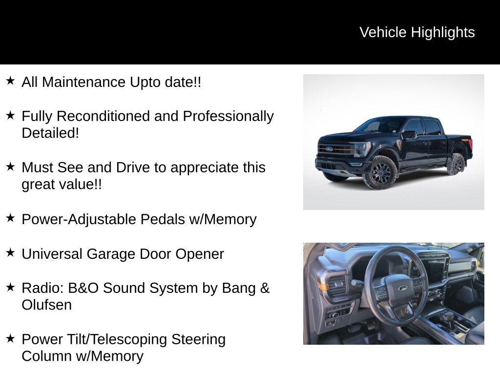 Still Under Factory Warranty, Still Under Factory Powertrain Warranty, **Super Clean and Well Taken Care Of**, Sunroof / Moonroof, Backup Camera, Trailer Hitch, Bluetooth, Hands-Free, Leather Seats, Heated Seats, Steering Wheel Controls, Multi-zone Climate Control, New Feature, Premium Wheels, Keyless Entry, AWD/4WD, Non-Smoker, All Maintenance Upto date!!, Fully Reconditioned and Professionally Detailed!, Must See and Drive to appreciate this great value!!, 4WD, 12" Productivity Screen in Instrument Cluster, 2nd Row Heated Seats, 360 Degree Camera, Advanced Security Pack, Equipment Group 402A High, Ford Co-Pilot360 Assist 2.0, Heated Steering Wheel, LED Projector w/Dynamic Bending Headlamps, Power Glass Sideview Mirr w/Body-Color Skull Caps, Power Tilt/Telescoping Steering Column w/Memory, Power-Adjustable Pedals w/Memory, Power-Sliding Rear Window, Pro Trailer Backup Assist & Pro Trailer Hitch Assist, Radio: B&O Sound System by Bang & Olufsen, Rain-Sensing Wipers, Tough Bed Spray-In Bedliner, Twin Panel Moonroof, Unique Tremor Leather-Trimmed Bucket Seats, Universal Garage Door Opener, Wireless Charging Pad. Priced below KBB Fair Purchase Price! Odometer is 10400 miles below market average! 16/20 City/Highway MPG