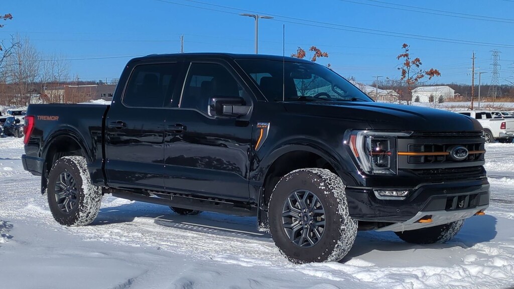Recent Arrival! Clean CARFAX. Certified. 2023 Ford F-150 Tremor Is nicely equipped with Equipment Group 402A High (12" Productivity Screen in Instrument Cluster, 2nd Row Heated Seats, 360 Degree Camera, Advanced Security Pack, Heated Steering Wheel, LED Projector w/Dynamic Bending Headlamps, Power Glass Sideview Mirr w/Body-Color Skull Caps, Power Tilt/Telescoping Steering Column w/Memory, Power-Adjustable Pedals w/Memory, Power-Sliding Rear Window, Pro Trailer Backup Assist & Pro Trailer Hitch Assist, Radio: B&O Sound System by Bang & Olufsen, Rain-Sensing Wipers, Unique Tremor Leather-Trimmed Bucket Seats, Universal Garage Door Opener, and Wireless Charging Pad), Ford Co-Pilot360 Assist 2.0, Ford Blue Advantage: Blue Certified Certified, 4WD, Tough Bed Spray-In Bedliner, Twin Panel Moonroof, 4-Wheel Disc Brakes, ABS brakes, Air Conditioning, Auto High-beam Headlights, Brake assist, Class IV Trailer Hitch Receiver, Compass, Delay-off headlights, Driver door bin, Dual front impact airbags, Dual front side impact airbags, Electronic Locking w/3.73 Axle Ratio, Electronic Stability Control, Emergency communication system: SYNC 4 911 Assist, Exterior Parking Camera Rear, Front anti-roll bar, Front reading lights, Front wheel independent suspension, Fully automatic headlights, Heated door mirrors, Illuminated entry, Integrated Trailer Brake Controller, Low tire pressure warning, Occupant sensing airbag, Outside temperature display, Overhead airbag, Overhead console, Panic alarm, Passenger door bin, Passenger vanity mirror, Power door mirrors, Power steering, Power windows, Radio data system, Rear step bumper, Remote keyless entry, Security system, Speed control, Speed-sensing steering, Split folding rear seat, Steering wheel mounted audio controls, SYNC 4 w/Enhanced Voice Recognition, Tachometer, Telescoping steering wheel, Tilt steering wheel, Traction control, Trip computer, Variably intermittent wipers, and Voltmeter.