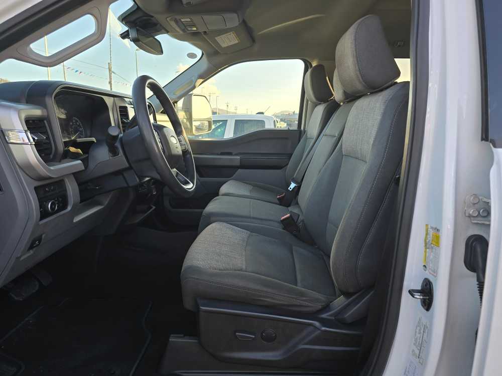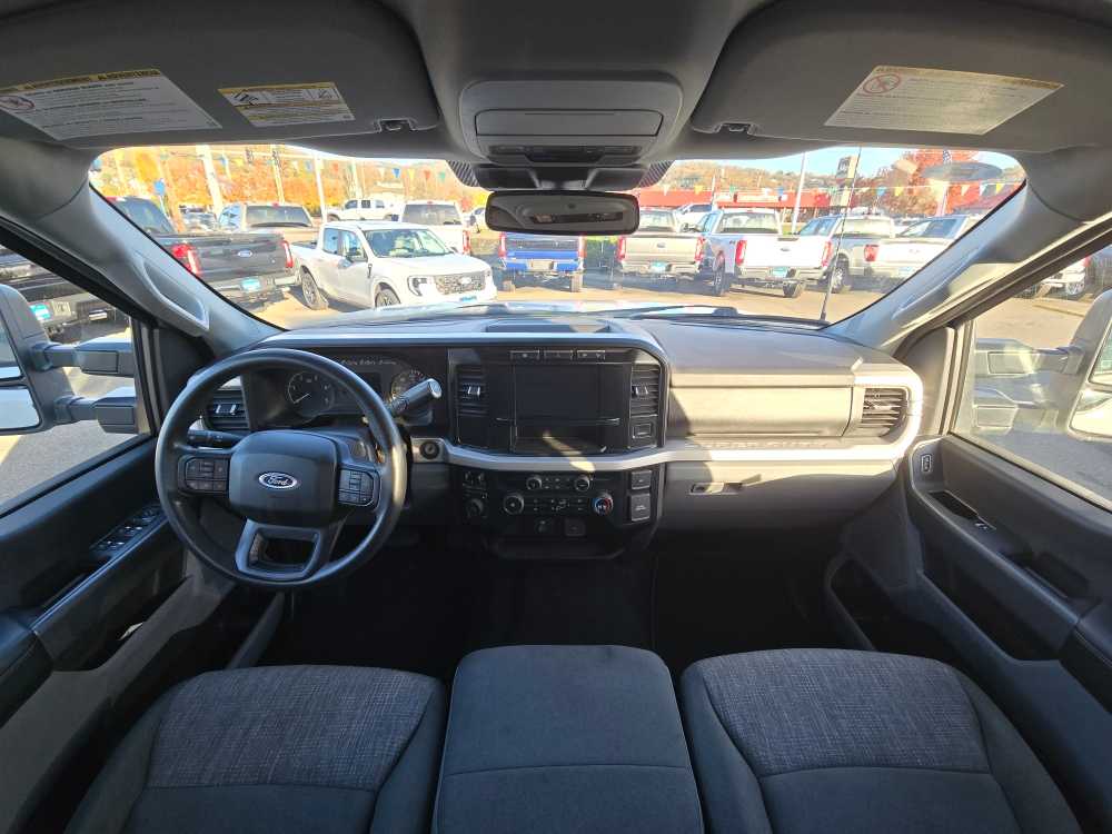 manual push-button engine-exhaust braking, Operator Commanded Regeneration (OCR) and intelligent oil-life monitor, 48 Gallon Fuel Tank, GVWR: 12,000 lb Payload Package, 3.31 Axle Ratio, Dual 68 AH/65 AGM Batteries, ELECTRONIC-LOCKING W/3.31 AXLE RATIO, power-folding w/Autofold, telescoping, power glass, turn signal, high intensity LED security approach lamps and utility lighting system (LED side-mirror spotlights), Spare may not be the same as road tire, SelectShift and selectable drive modes: normal, eco, slippery roads, tow/haul and off-road (STD). 2023 Ford Super Duty F-350 SRW Pickup with Oxford White exterior and Medium Dark Slate interior features a 8 Cylinder Engine with 475 HP at 2600 RPM*. Non-Smoker vehicle