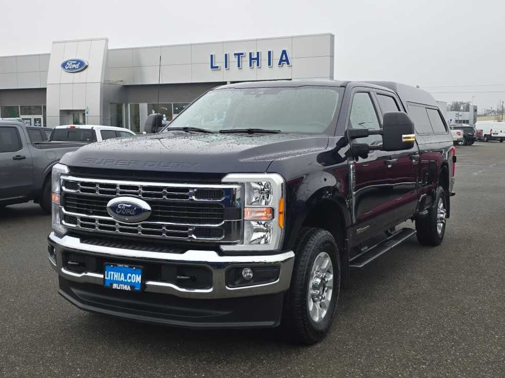 ENGINE: 6.7L 4V OHV POWER STROKE V8 TURBO DIESEL B20 manual push-button engine-exhaust braking, Operator Commanded Regeneration (OCR) and intelligent oil-life monitor, 48 Gallon Fuel Tank, GVWR: 12,000 lb Payload Package, 3.31 Axle Ratio, Dual 68 AH/65 AGM Batteries, 360-DEGREE CAMERA PACKAGE wired auxiliary trailer camera compatibility, Rear Parking Sensors, reverse sensing system w/reverse brake assist, LED Center High-Mounted Stop Lamp (CHMSL) Camera, LED center high-mounted stop lamp (CHMSL), 360-Degree Camera System, picture in picture capability, BLIS w/Cross-Traffic Alert, trailer coverage, PLATFORM RUNNING BOARDS, ELECTRONIC-LOCKING W/3.31 AXLE RATIO, POWERSCOPE TRAILER TOW MIRRORS W/HEAT power-folding w/Autofold, telescoping, power glass, turn signal, high intensity LED security approach lamps and utility lighting system (LED side-mirror spotlights), TIRES: LT275/70RX18E BSW Automatic Transmission (4) Spare may not be the same as road tire, REMOTE START SYSTEM, TRANSMISSION: TORQSHIFT 10-SPEED AUTOMATIC SelectShift and selectable drive modes: normal, eco, slippery roads, tow/haul and off-road (STD). 2023 Ford Super Duty F-350 SRW Pickup with Antimatter Blue Metallic exterior and Medium Dark Slate interior features a 8 Cylinder Engine with 475 HP at 2600 RPM*. Non-Smoker vehicle