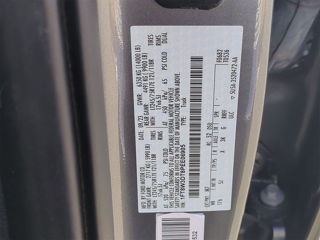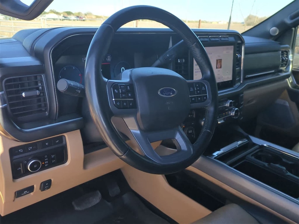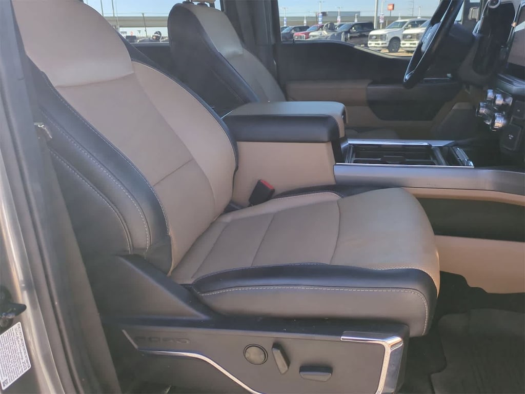 ENGINE: 6.7L 4V OHV POWER STROKE V8 TURBO DIESEL B20 manual push-button engine-exhaust braking, Operator Commanded Regeneration (OCR) and intelligent oil-life monitor, 48 Gallon Fuel Tank, 3.55 Axle Ratio, Dual 68 AH/65 AGM Batteries, LARIAT ULTIMATE PACKAGE Ford Co-Pilot 360 2.0, rear view camera, reverse brake assist and reverse sensing system, Lane-Keeping System, lane-keeping alert, lane-keeping aid and driver alert, Pre-Collision Assist, Automatic Emergency Braking (AEB), pedestrian detection, forward collision warning, dynamic brake support and intersection assist, Post-Collision Braking, Automatic High Beam, BLIS w/Cross-Traffic Alert, trailer coverage, Upfitter Switches (6), Located in overhead console, 4-Way Adjustable Headrests, Tow Technology Package, Lane Keeping Assist, Pro Trailer Backup Assist, trailer reverse guidance, Intelligent Adaptive Cruise Control w/Stop-and-Go, speed sign recognition, Pro Trailer Hitch Assist, Wireless Charging Pad, Front Sensing System, Tailgate Step & Handle, Head-Up Display, TWIN PANEL POWER MOONROOF map lights and moonroof switches, CHROME PACKAGE 2 front chrome tow hooks, Chrome Door Handles, Unique Chrome Mirror Caps, Chrome Exhaust Tip, LIMITED SLIP W/3.55 AXLE RATIO, TIRES: LT245/75RX17E OWL Automatic Transmission (6) Spare may not be the same as road tire, TRANSMISSION: TORQSHIFT 10-SPEED AUTOMATIC SelectShift and selectable drive modes: normal, eco, slippery roads, tow/haul and off-road (STD). 2023 Ford Super Duty F-350 DRW Pickup with Carbonized Gray exterior and Baja interior features a 8 Cylinder Engine with 475 HP at 2600 RPM*.