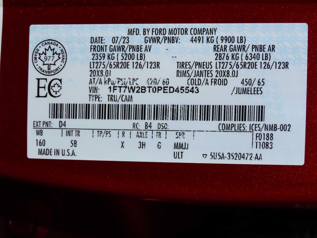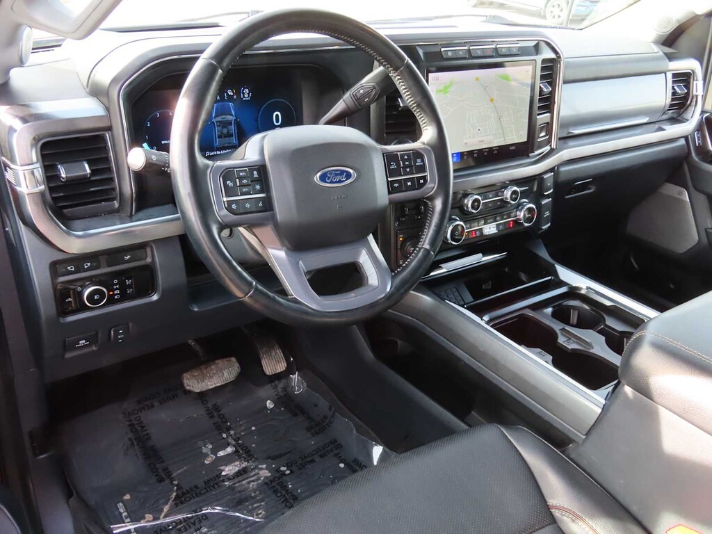 ENGINE: 6.7L 4V OHV POWER STROKE V8 TURBO DIESEL B20 manual push-button engine-exhaust braking, Operator Commanded Regeneration (OCR) and intelligent oil-life monitor, 250 Amp Alternator, 34 Gallon Fuel Tank, 3.31 Axle Ratio, Dual 68 AH/65 AGM Batteries, LARIAT ULTIMATE PACKAGE Ford Co-Pilot 360 2.0, rear view camera, reverse brake assist and reverse sensing system, Lane-Keeping System, lane-keeping alert, lane-keeping aid and driver alert, Pre-Collision Assist, Automatic Emergency Braking (AEB), pedestrian detection, forward collision warning, dynamic brake support and intersection assist, Post-Collision Braking, Automatic High Beam, BLIS w/Cross-Traffic Alert, trailer coverage, Upfitter Switches (6), Located in overhead console, 4-Way Adjustable Headrests, Tow Technology Package, Lane Keeping Assist, Pro Trailer Backup Assist, trailer reverse guidance, Intelligent Adaptive Cruise Control w/Stop-and-Go, speed sign recognition, Pro Trailer Hitch Assist, Wireless Charging Pad, Front Sensing System, Tailgate Step & Handle, Head-Up Display, BLACK APPEARANCE PACKAGE front and rear black Ford ovals, box side decal (4x4, FX4 or Tremor) and ebony black fender vent surround dark fender badge, Ebony Black Painted Front Grille Bars, Ebony Black Painted Mirror Caps, Tough Bed Spray-In Bedliner, tailgate-guard, black box bed tie-down hooks and black bed attachment bolts, Body Color Front & Rear Bumpers, Wheels: 20 Machined & Ebony Black High Gloss, Black premium painted aluminum, gloss black hub cover/center ornament, Tires: LT275/65Rx20E BSW Automatic Transmission, Spare may not be the same as road tire, 6 Ebony Black Angular Running Boards, TWIN PANEL POWER MOONROOF map lights and moonroof switches, ELECTRONIC-LOCKING W/3.31 AXLE RATIO, TRANSMISSION: TORQSHIFT 10-SPEED AUTOMATIC SelectShift and selectable drive modes: normal, eco, slippery roads, tow/haul and off-road (STD). MP3 Player, 4x4, Onboard Communications System, Keyless Entry, Privacy Glass, Child Safety Locks, Steering Wheel Controls.